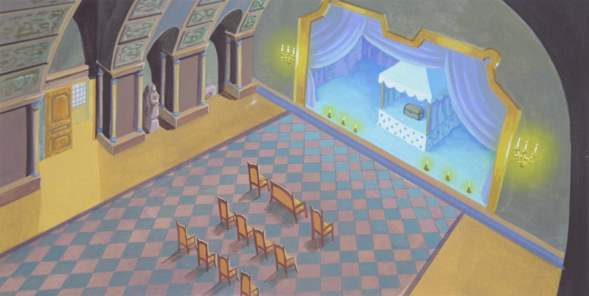 Carton des archives graphiques d'un épisode de la série de dessins animés " Quasimodo " (" The magical adventure of Quasimodo " en anglais) produite en 1995 par Ares Films, comprenant notamment : model sheet, celluloïd et background...