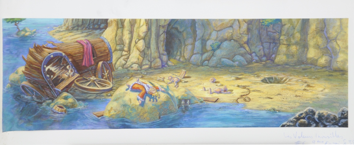Carton des archives graphiques d'un épisode de la série de dessins animés " Quasimodo " (" The magical adventure of Quasimodo " en anglais) produite en 1995 par Ares Films, comprenant notamment : model sheet, celluloïd et background...