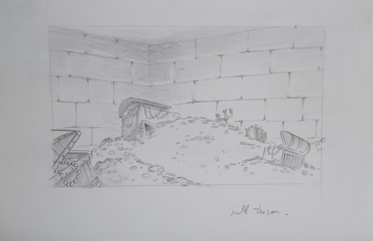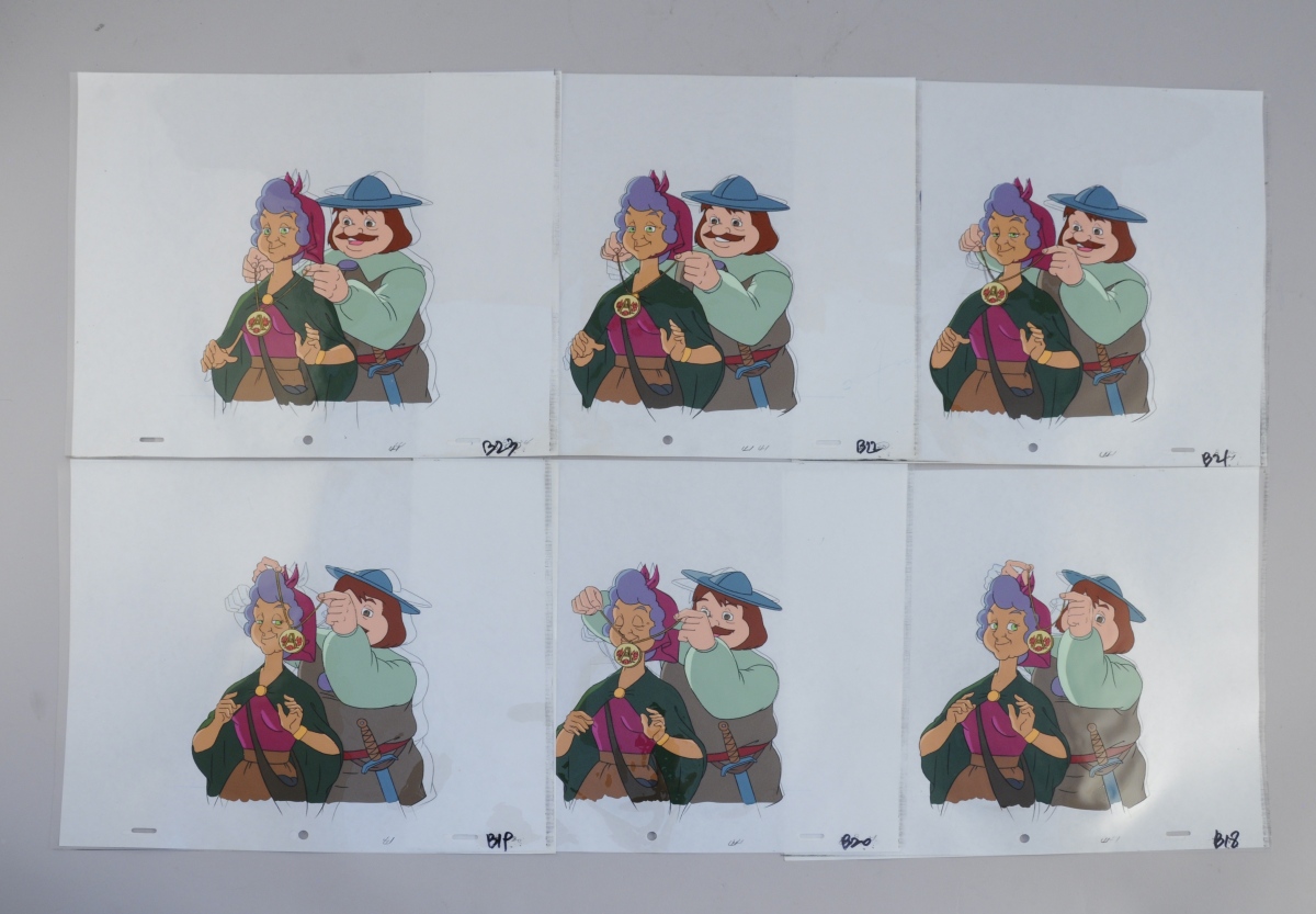 Carton des archives graphiques d'un épisode de la série de dessins animés " Quasimodo " (" The magical adventure of Quasimodo " en anglais) produite en 1995 par Ares Films, comprenant notamment : model sheet, celluloïd et background...