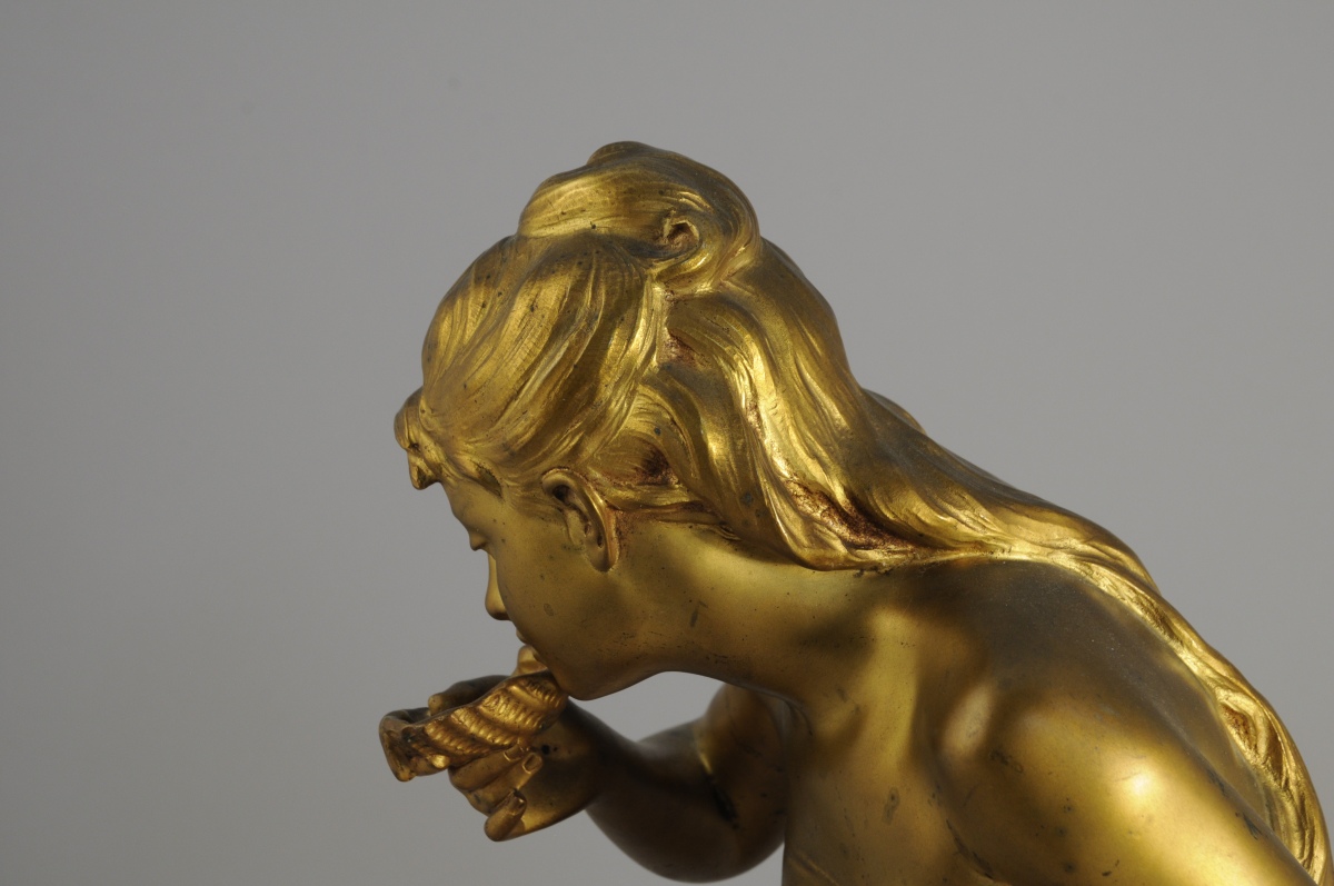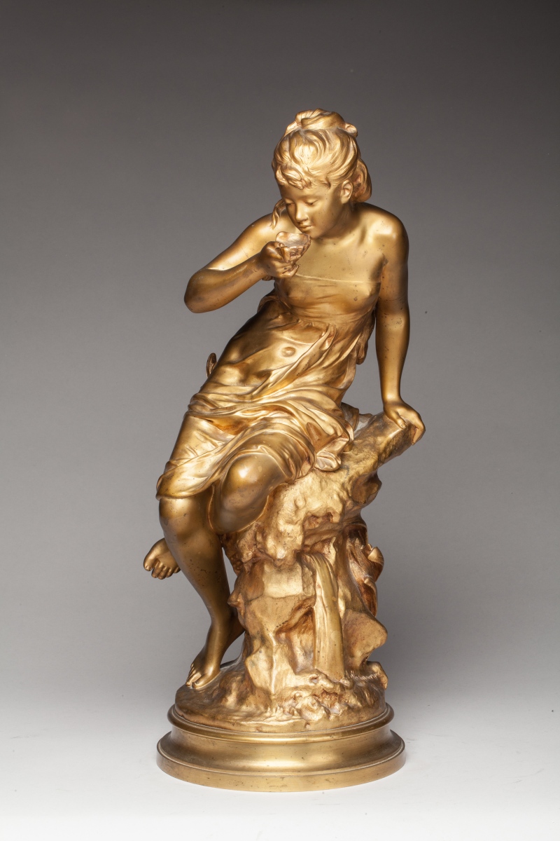 Mathurin MOREAU (1822 - 1912)La Source.Bronze à patine dorée, signé....