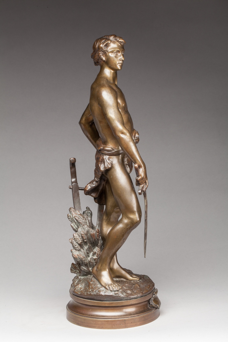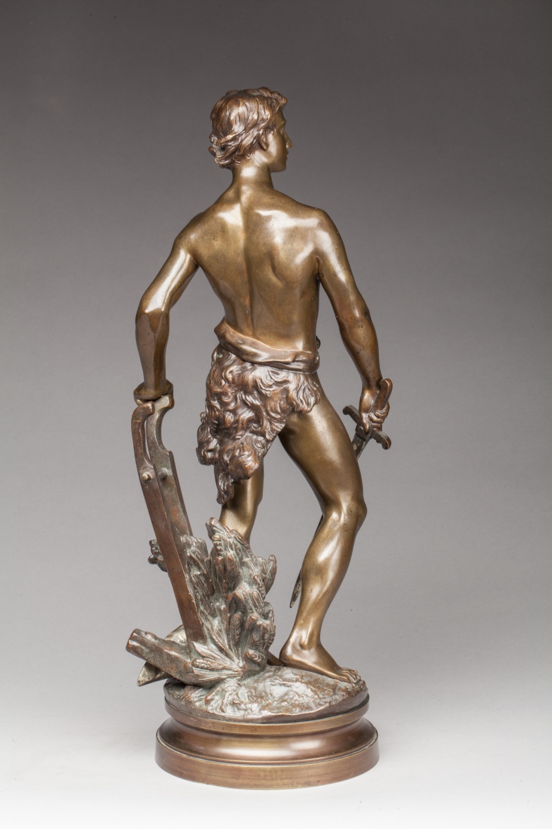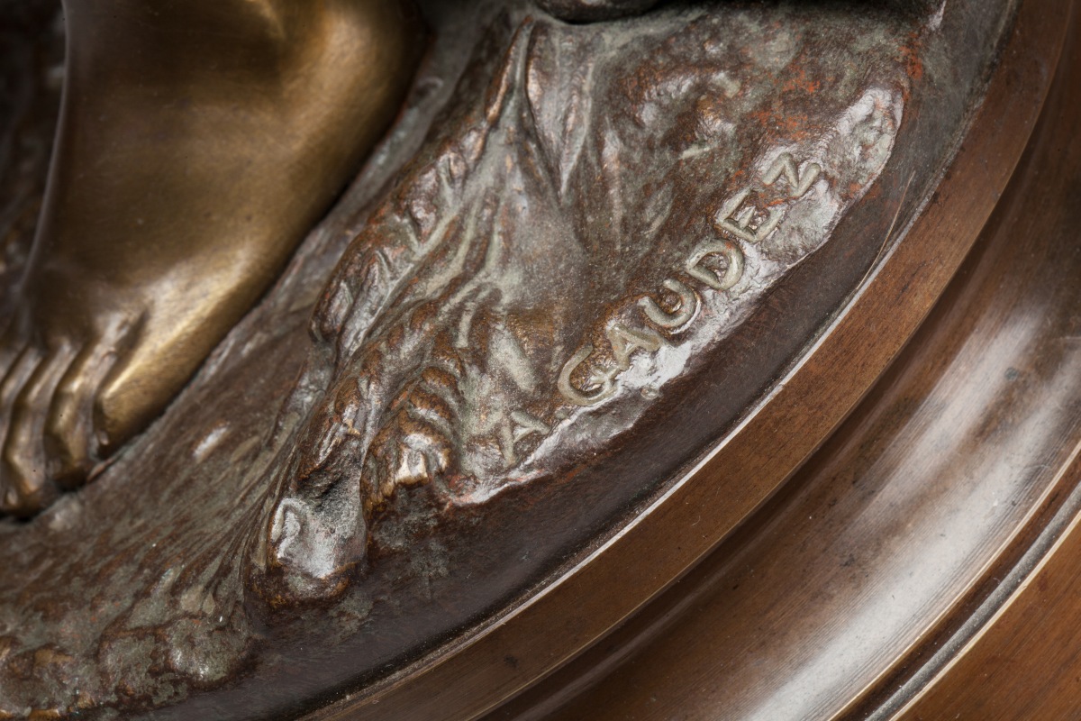 Base de forme ronde portant un cartouche marqué "Devoir / Par A. Gaudez / Hors-Concours".