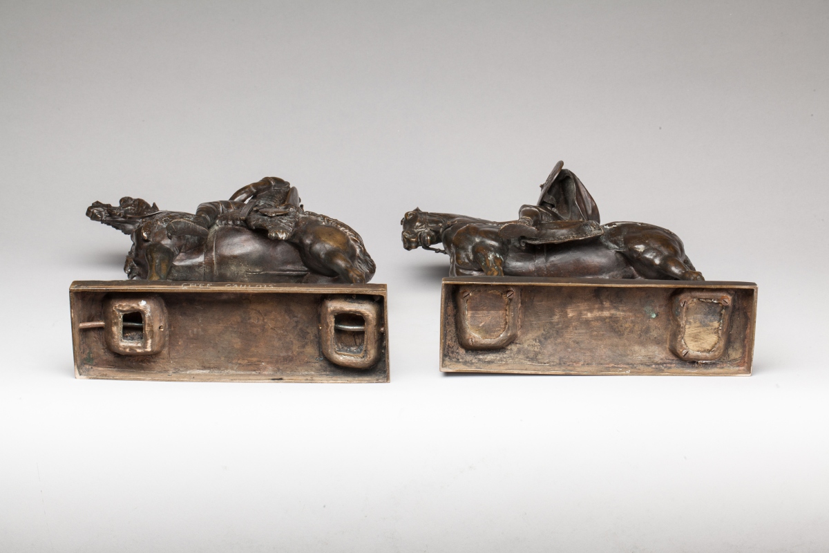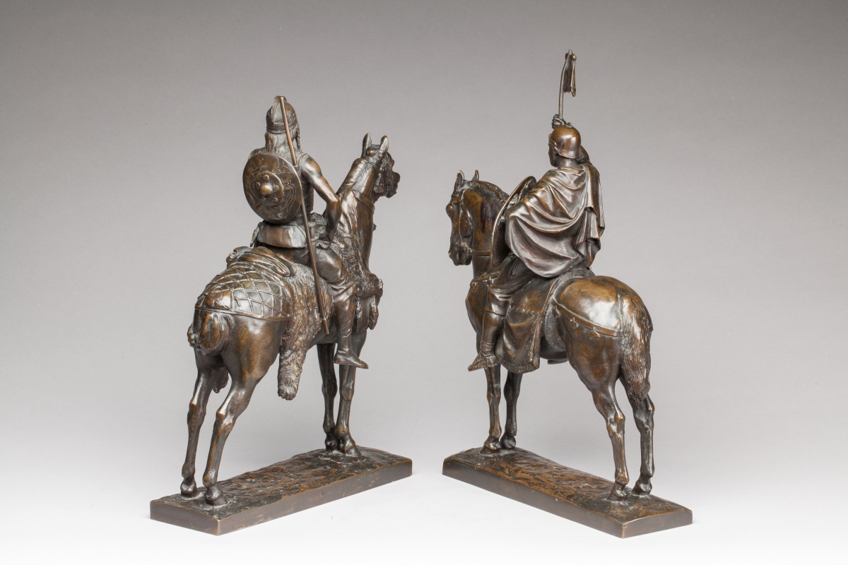 Emmanuel FRÉMIET (1824-1910)"Chef Gaulois" - "Cavalier Romain"Deux bronzes patinés, titrés...