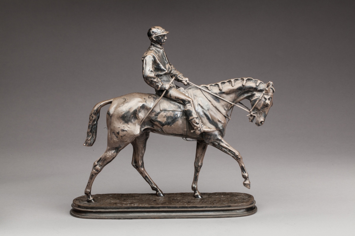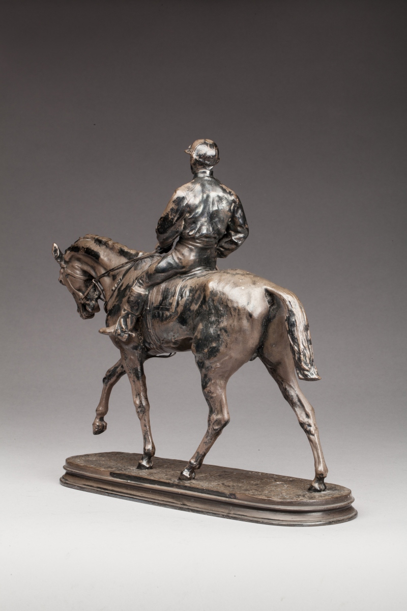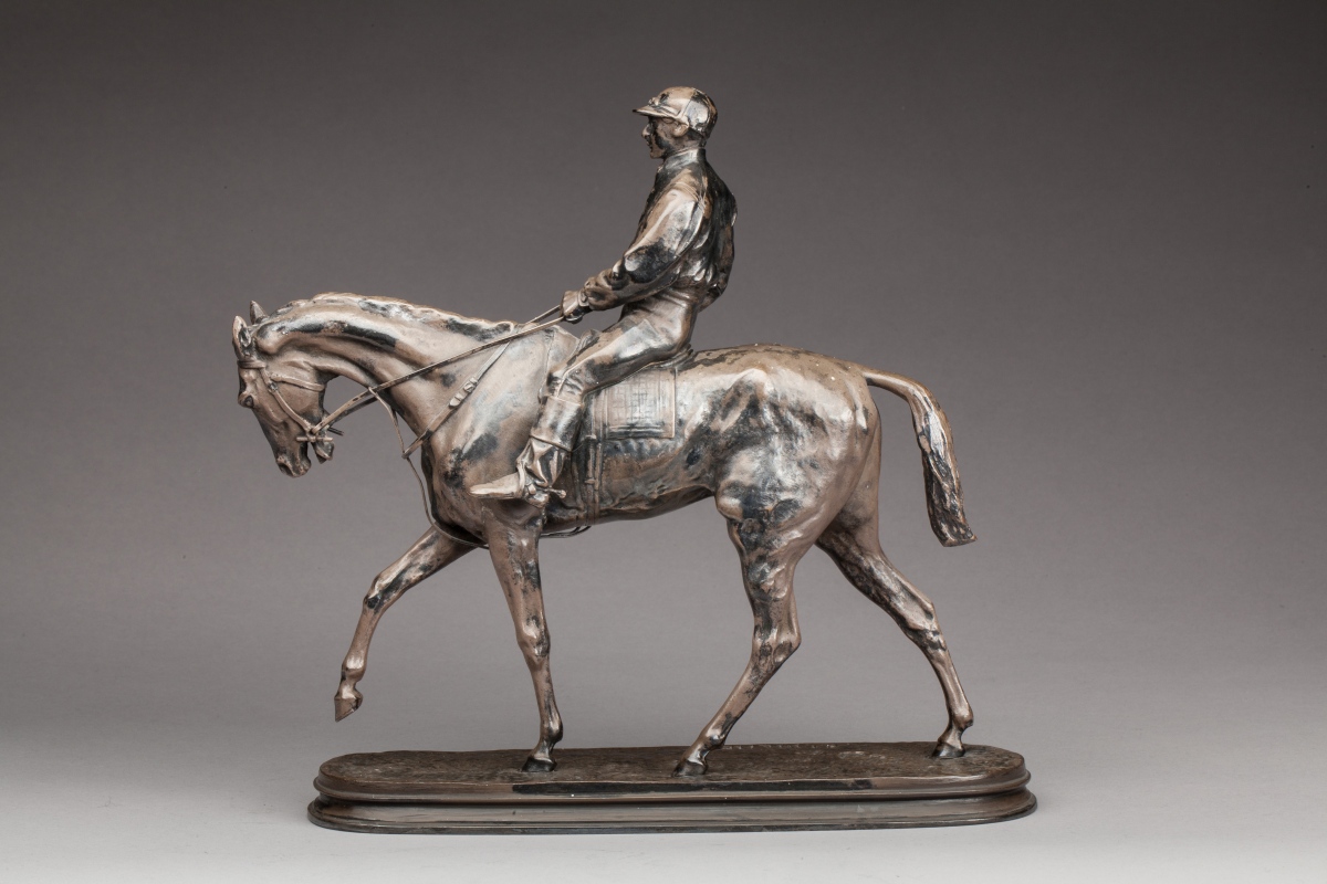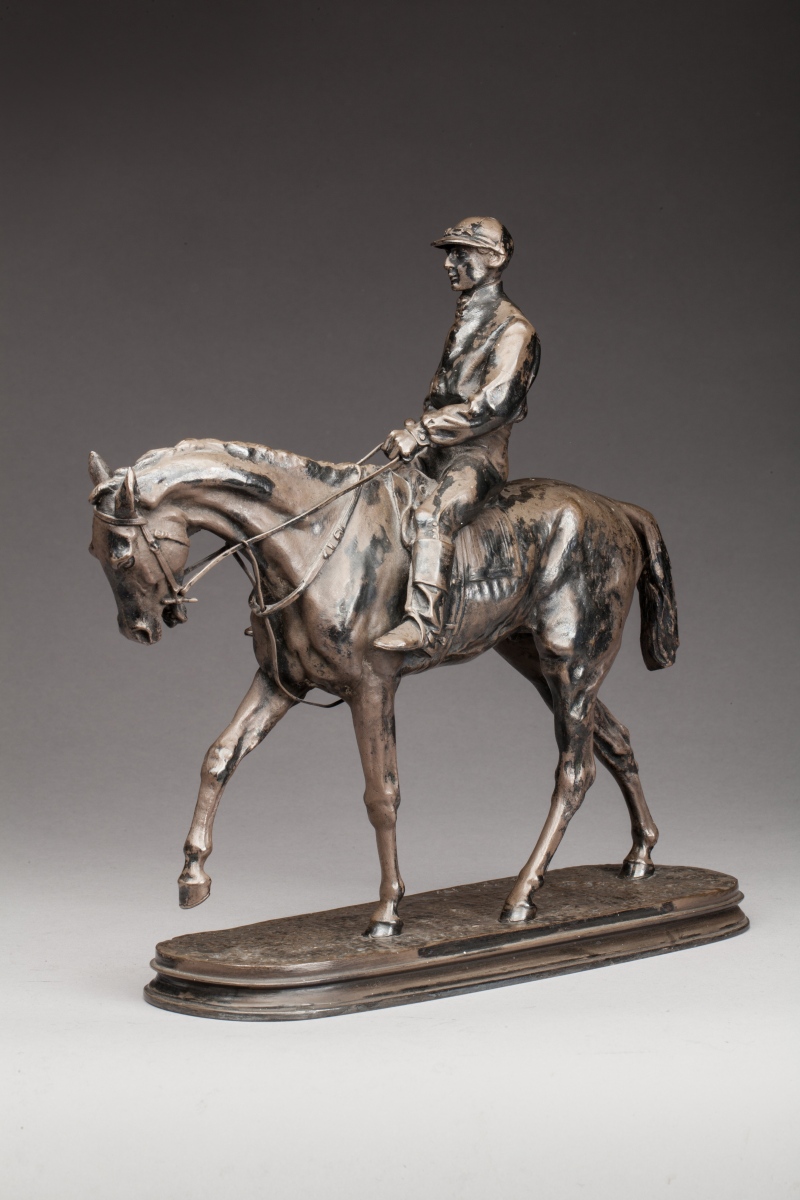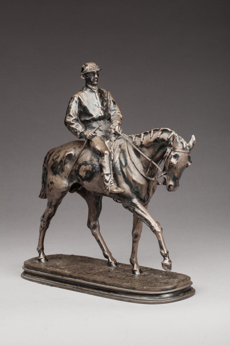 Pierre-Jules MÈNE (1810-1879)Jockey au pas.Bronze signé, anciennement patiné.Haut. 25, Larg....