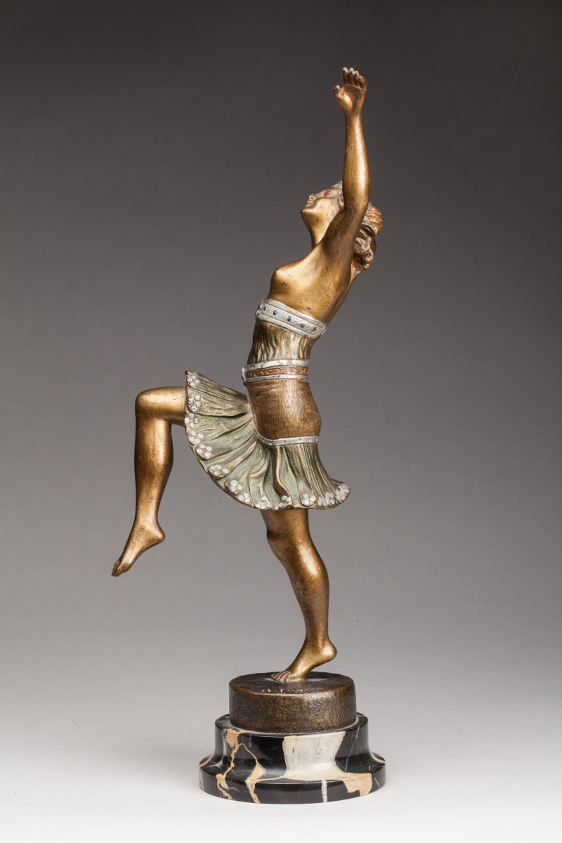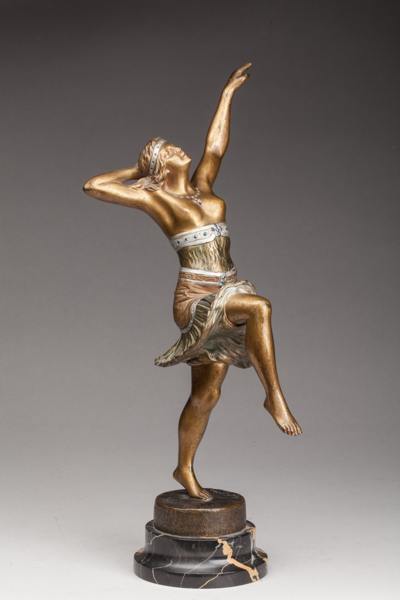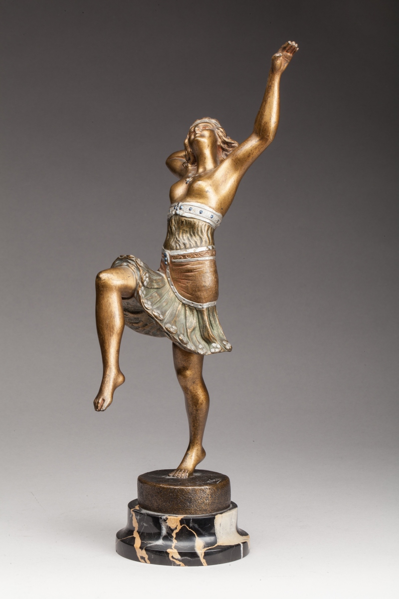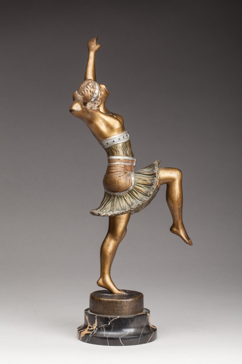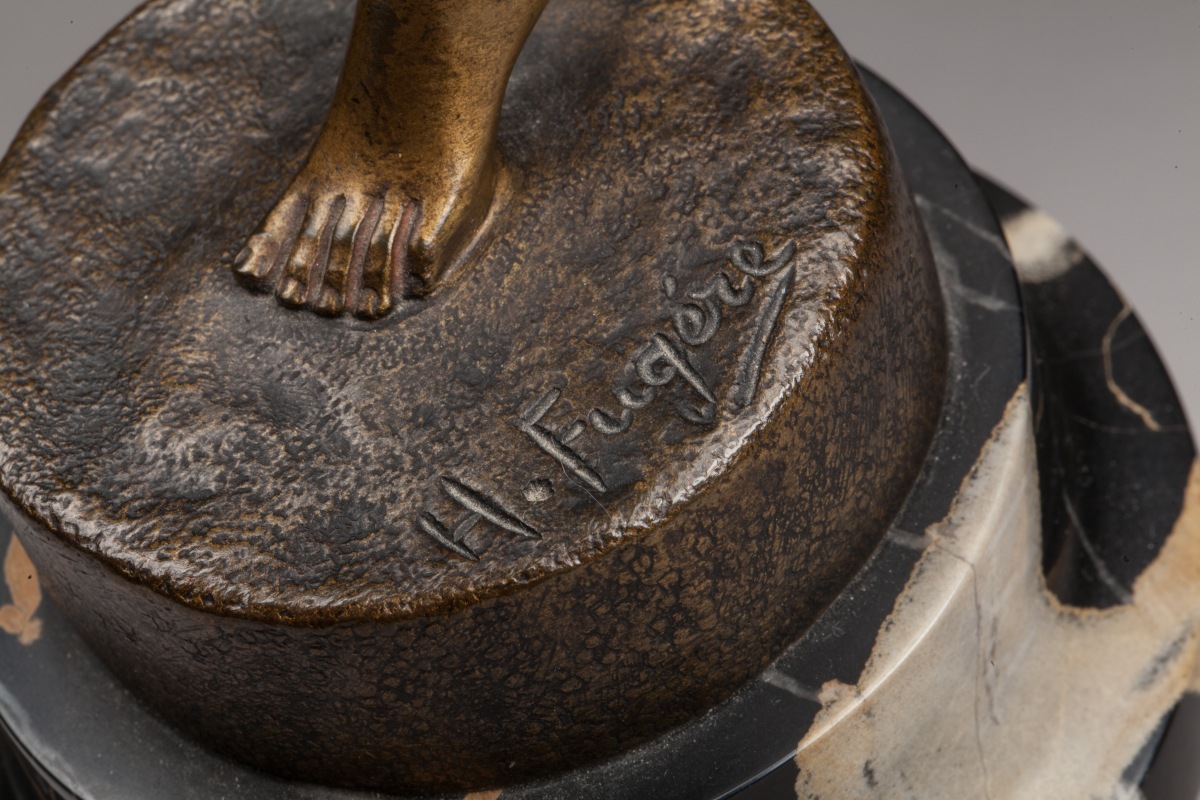 Bronze à patine dorée et vert antique. Socle en marbre. Signée "H. Fugère" sur la base.