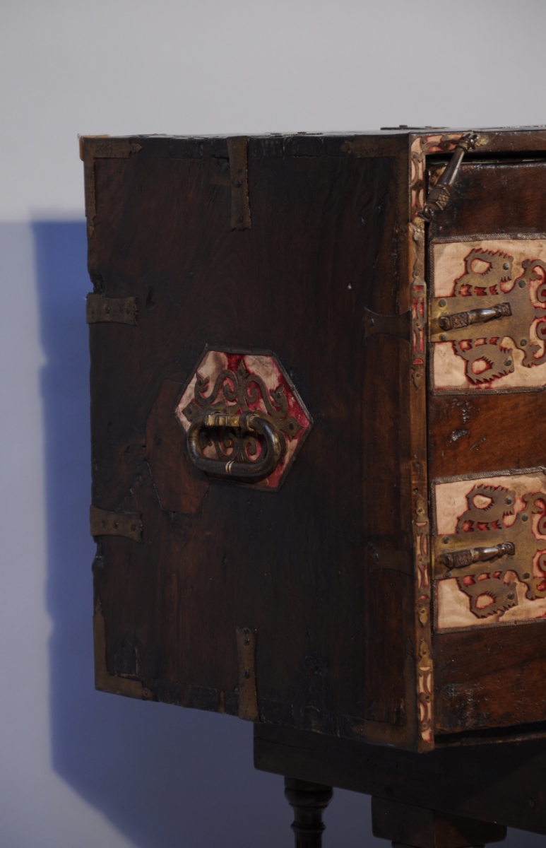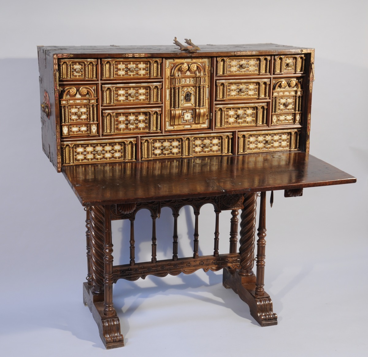Un modèle similaire à notre écritoire, daté vers 1620 est conservé au Musée des Arts Décoratifs de Madrid et reproduit dans Maria Paz AGUILO ALONSO, El Mueble en Espana Siglos XVI-XVII, Madrid, éditions Antiqvaria, 1993, p. 289. Il fait partie d'un groupe de meubles de même type, dit "escritorio de Salamanca, conservés au Musée de la Cathédrale de Leon, dans la collection Pinquier et dans la collection Almenas et Balaguer. Un autre écritoire conservé dans l'ancienne collection Berenguer à Badajoz présente un abattant au décor extérieur semblable. Ce dernier est illustré dans l'ouvrage précédemment cité en page 291.