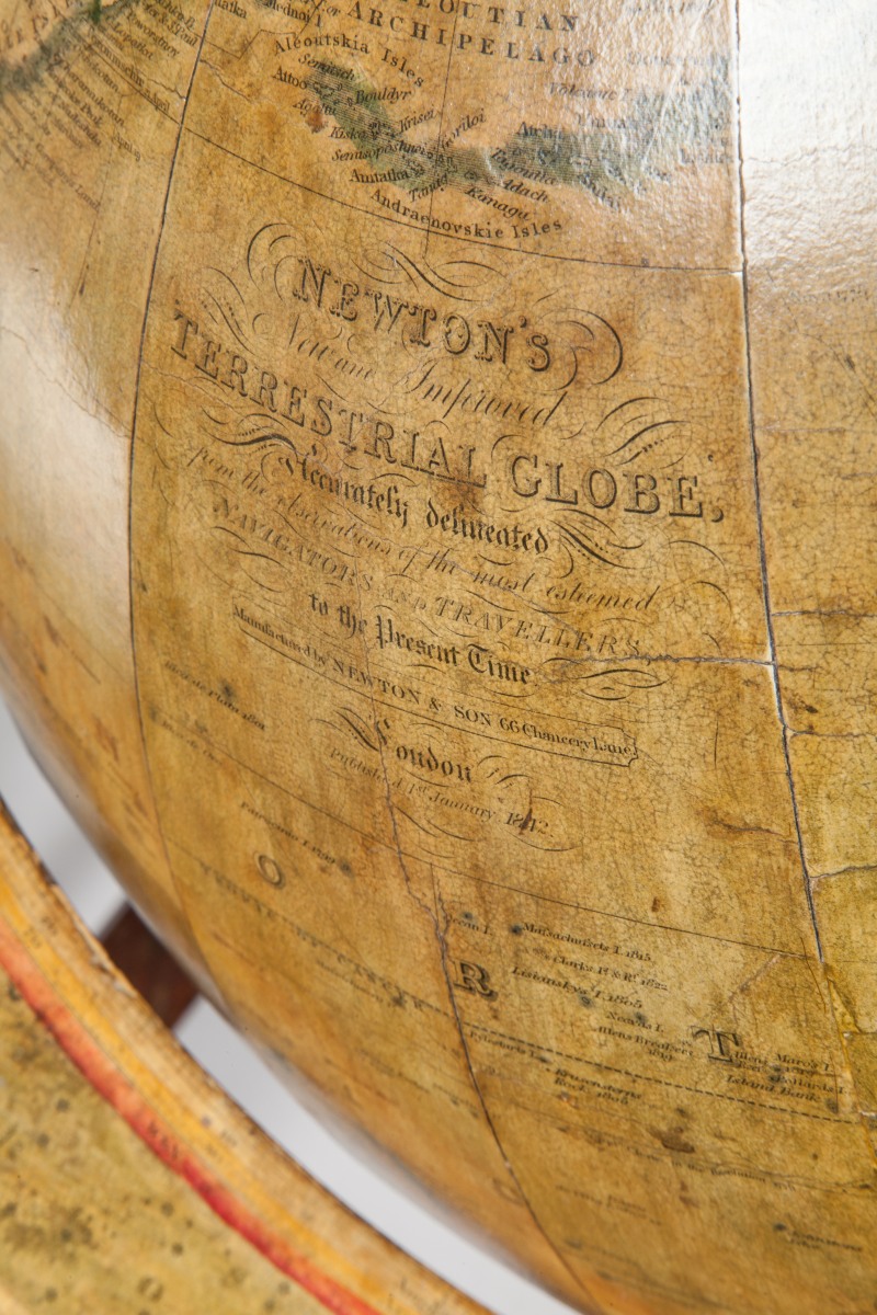 Le globe est signé "NEWTON'S New and Improved TERRESTRIAL GLOBE Accurately delineated from the observations of the most esteemed NAVIGATORS AND TRAVELLERS to the Present Time Manufactured by NEWTON & SON, 66 Chancery Lane & 3 Fleet St. Temple Bar Published 1st January 1842".