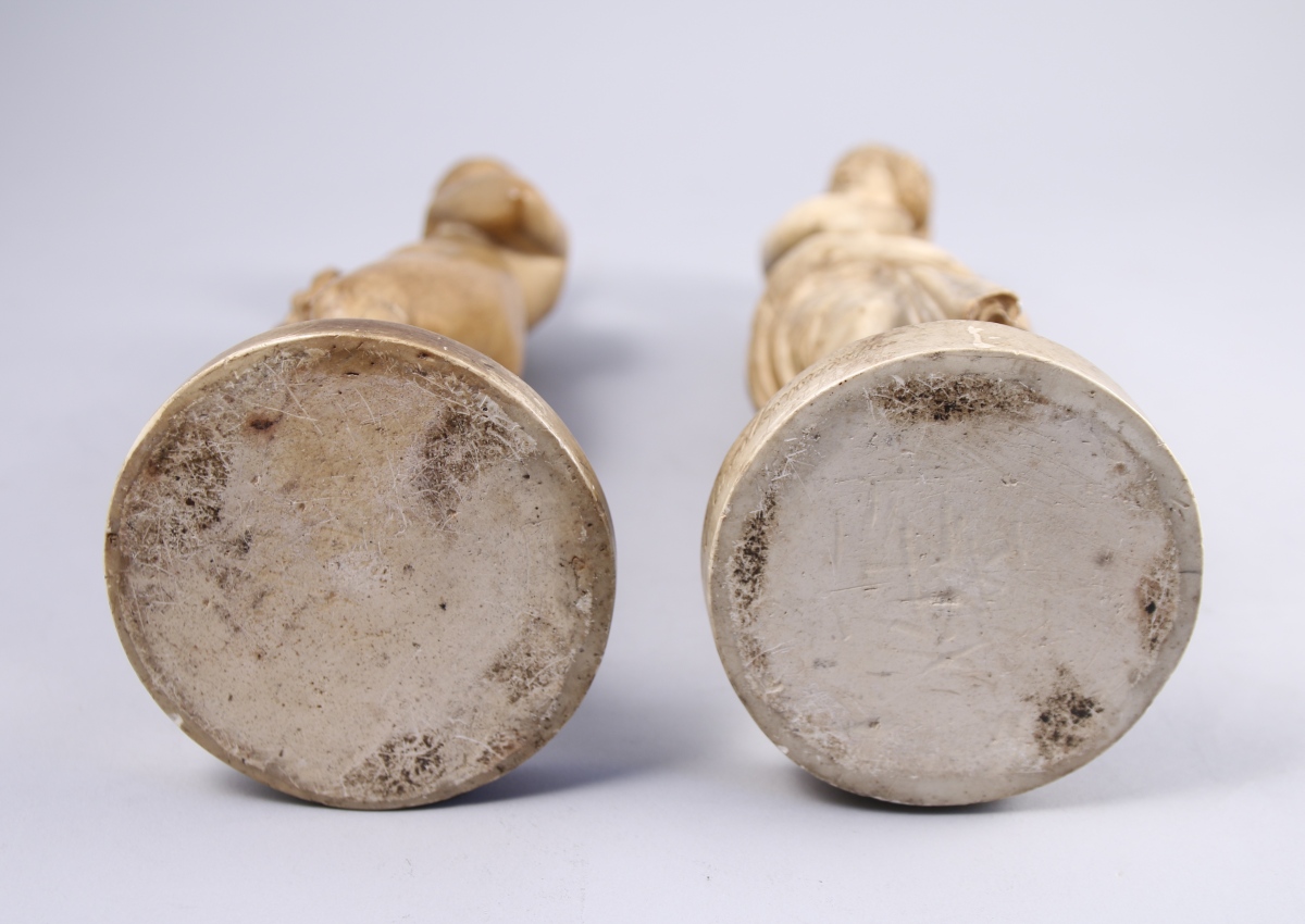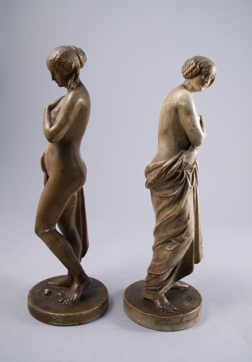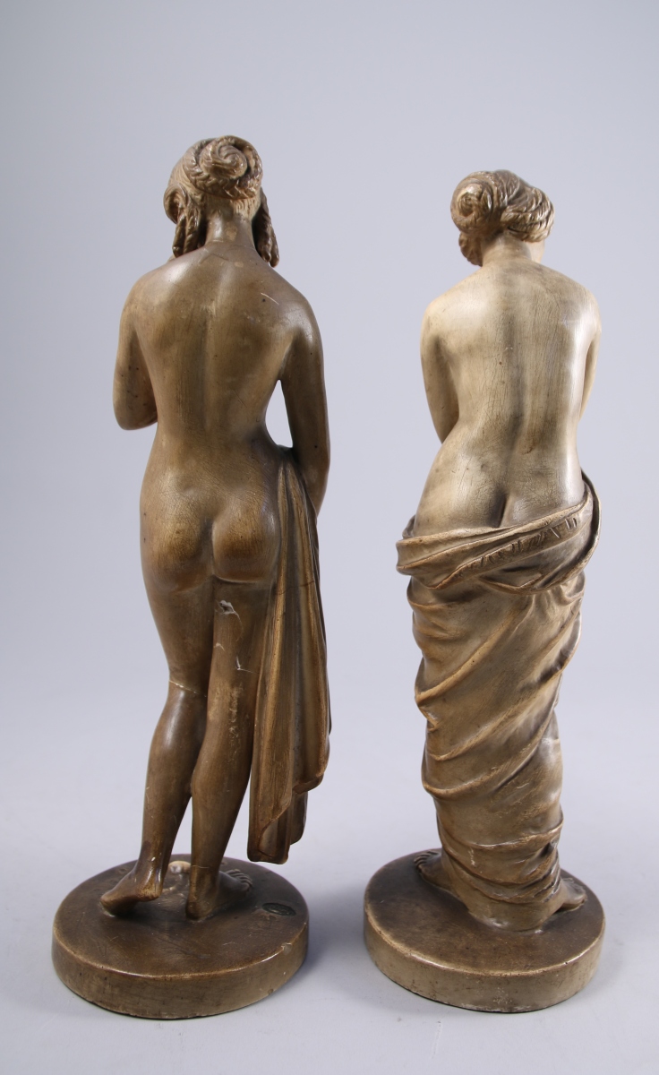 Deux SCULPTURES formant paire en plâtre patiné figurant une femme drapée.
