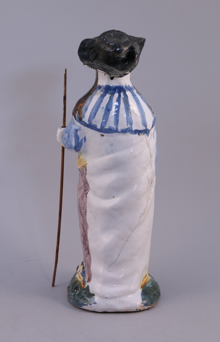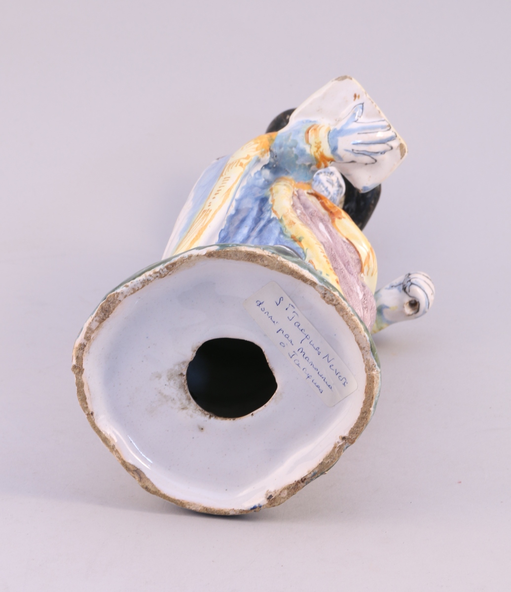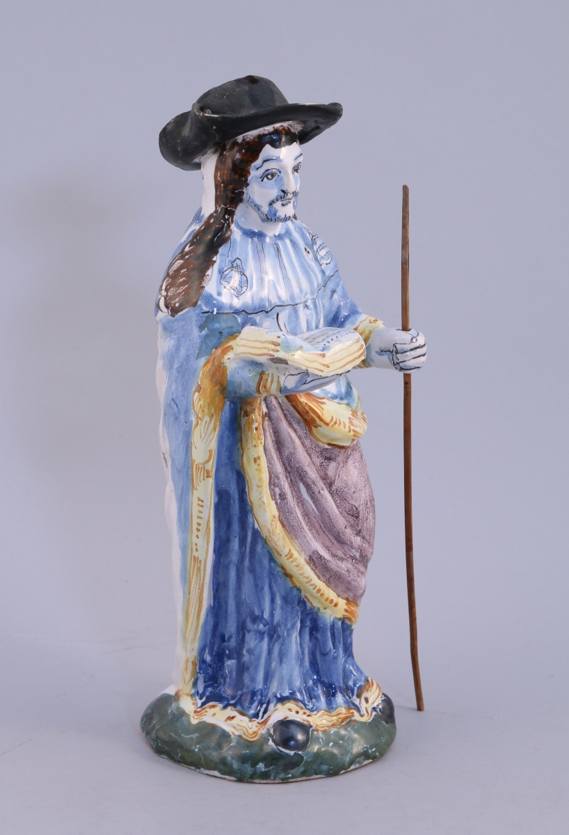 NEVERS. STATUETTE en faïence polychrome figurant SAINT JACQUES tenant un livre de la main droite.