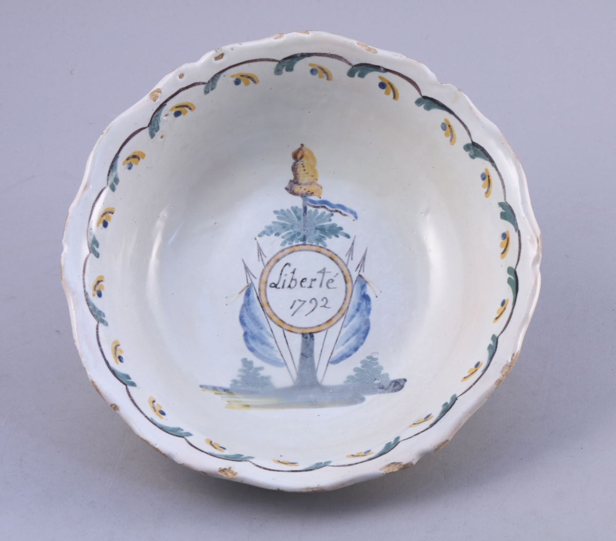 NEVERS, faïence. SALADIER à décor polychrome "Liberté 1792".