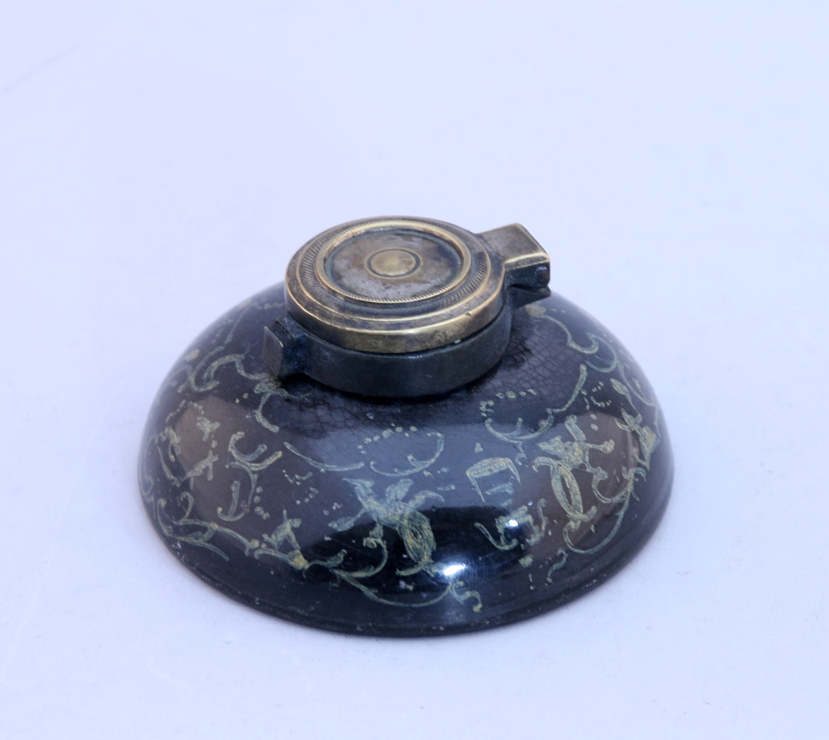 ENCRIER en faïence émaillée à décor rayonnant de style renaissant.