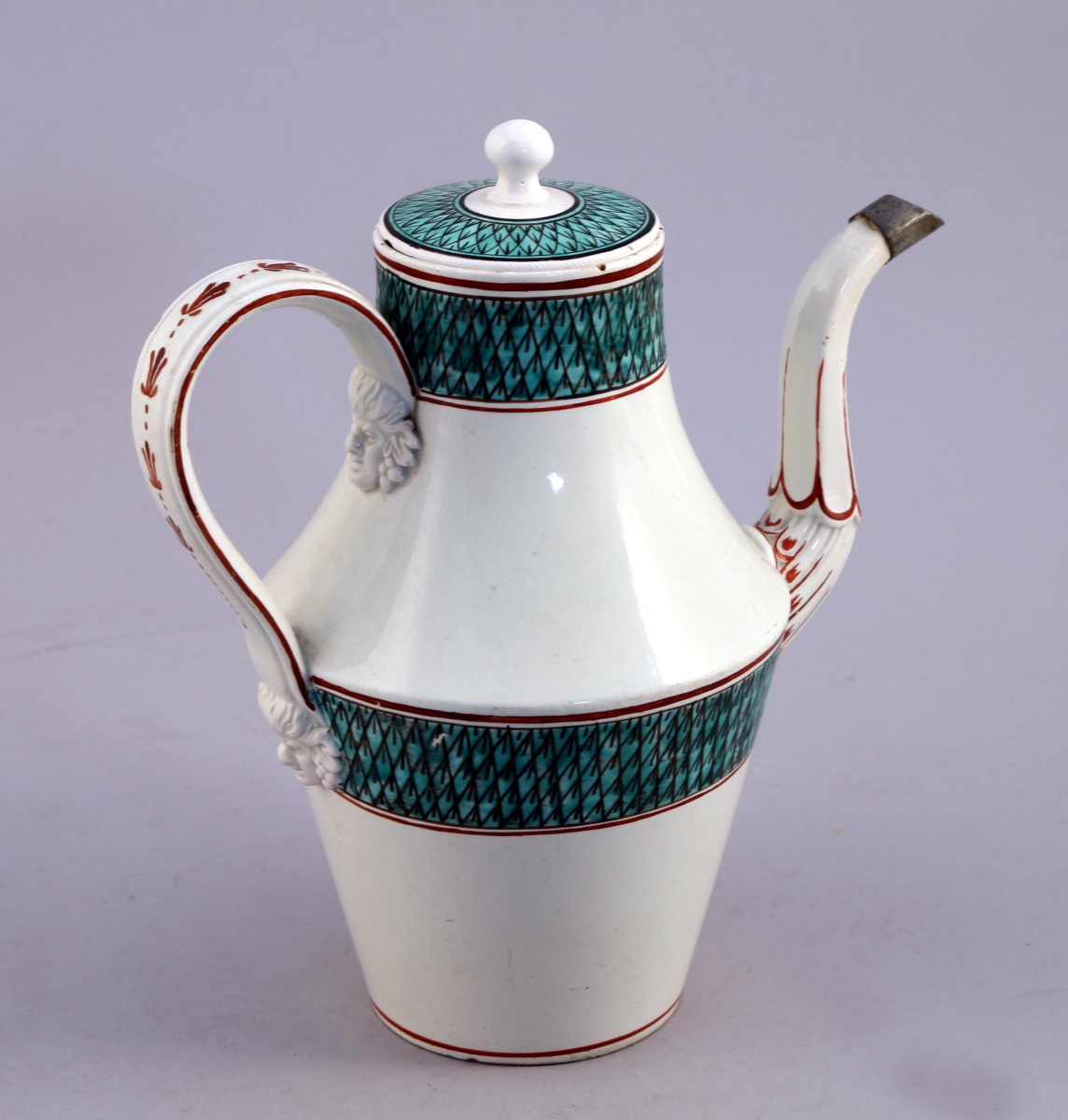 NAPLES ? Faïence fine ? VERSEUSE couverte à décor de larges bandes de croisillons à fond vert.