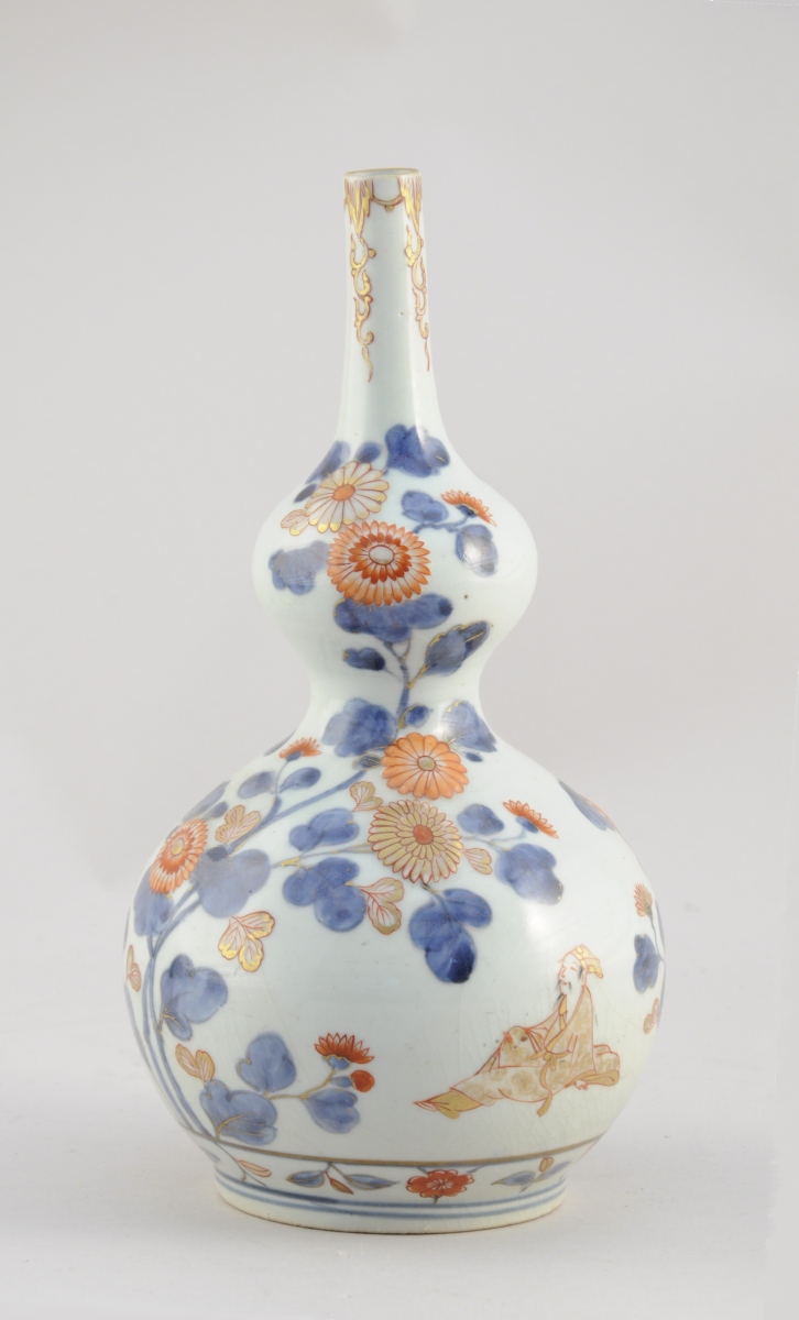 JAPON. VASE en porcelaine à double bulbe et décor Imari.