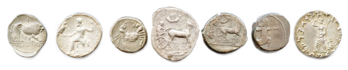 Lot de sept monnaies grecques en argent de Vélia, Agrigente,...
