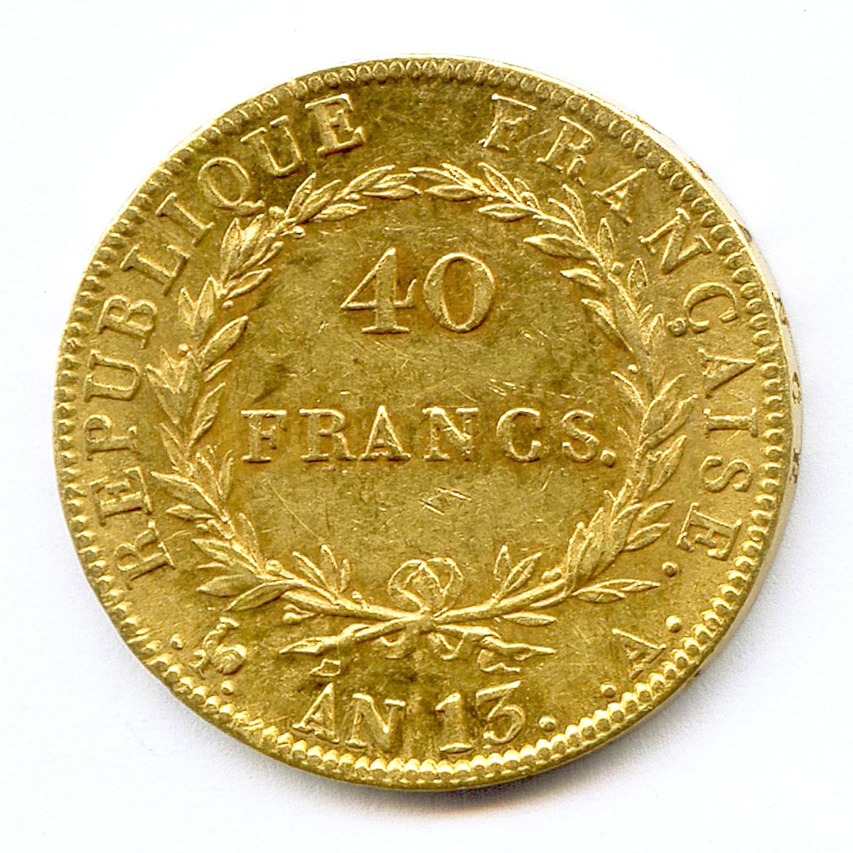 40 Francs or (tête nue) an 13 Paris.