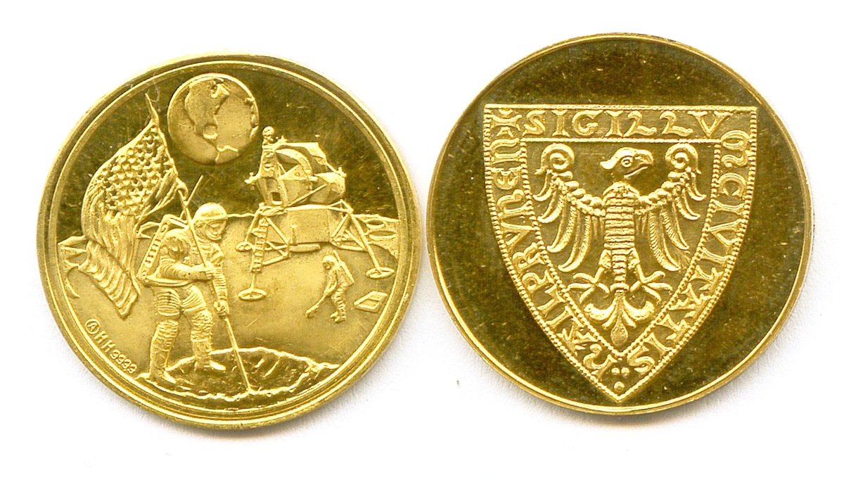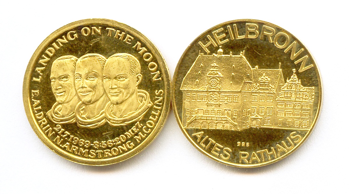Premier pas sur la Lune (Aldrin, Amstrong, Collins) et Hotel de la Ville de Heilbronn (Allemagne).