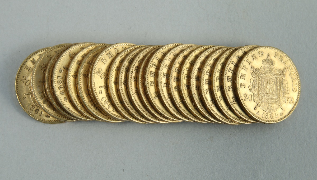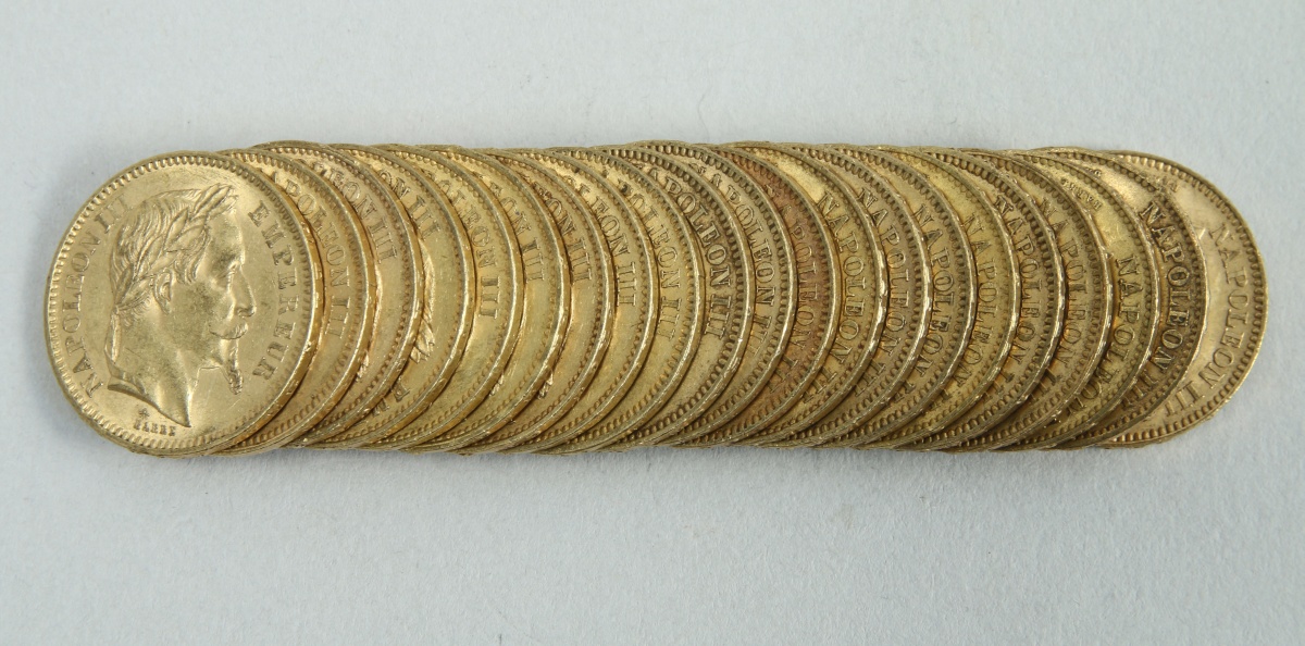FRANCE. 20 FRANCS or, 21 pièces. Napoléon III lauré.