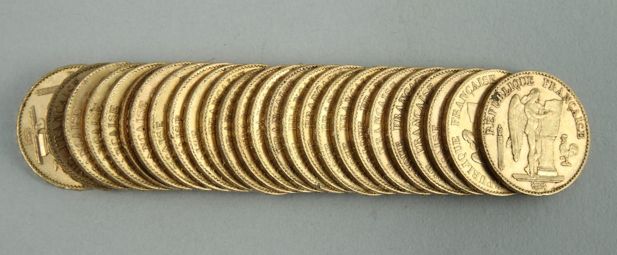 FRANCE. 20 FRANCS or, 26 pièces. Troisième République. Génie.