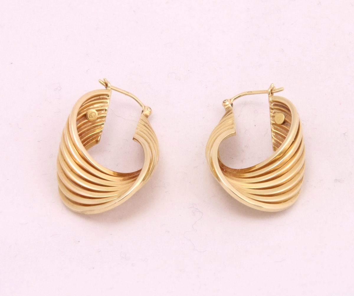 Paire de BOUCLES D'OREILLES en or jaune en forme de spires sans fin. Fermoir pour oreilles percées.