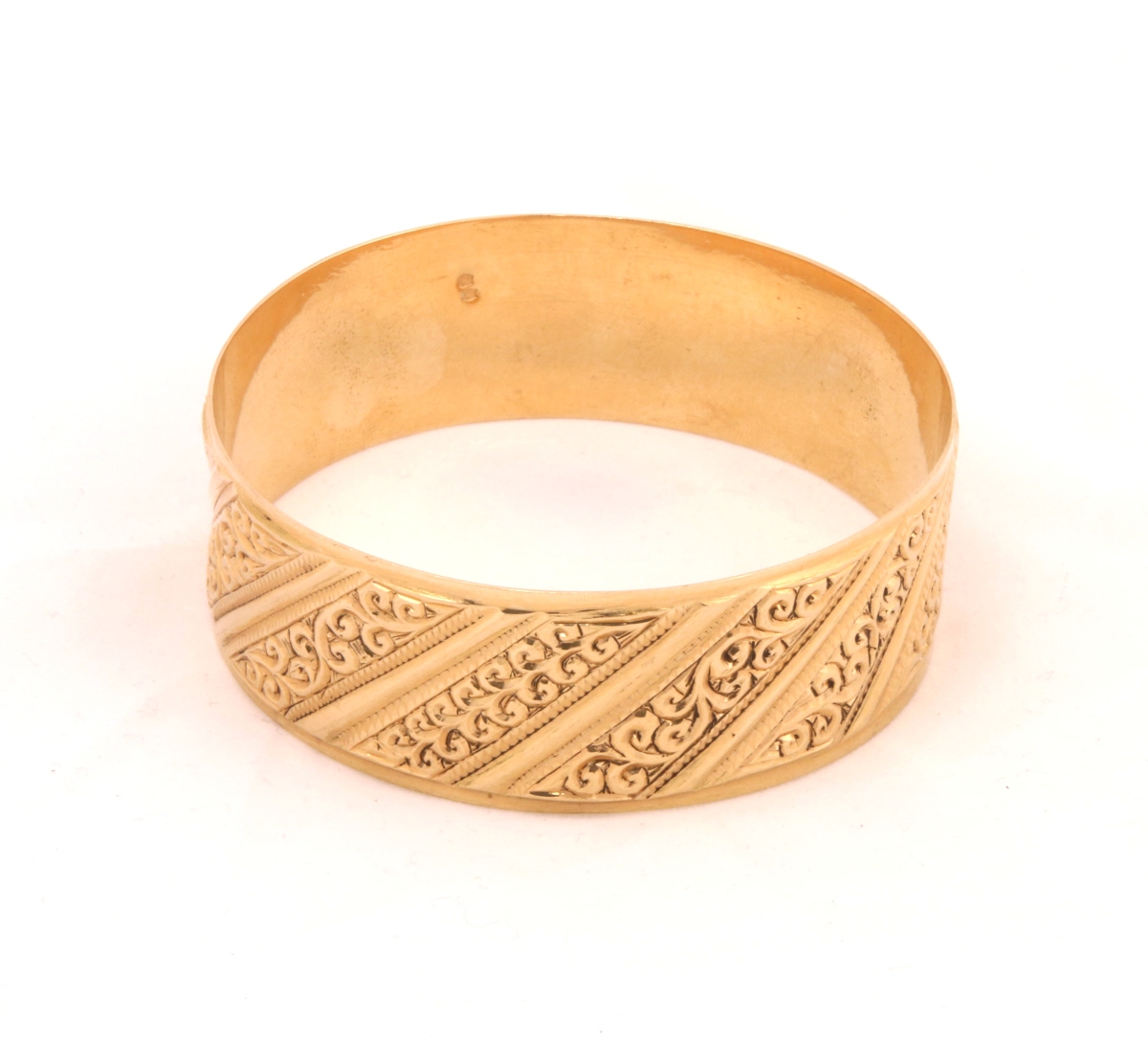 Large BRACELET rigide en or jaune 18k à décor de frises feuillagées torses.