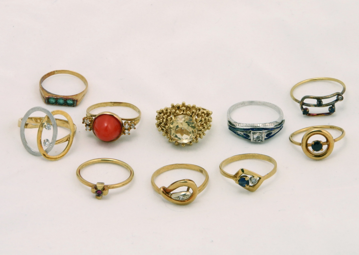 10 BAGUES en or blanc ou jaune 18k serties de pierres précieuses ou semi-précieuses.
