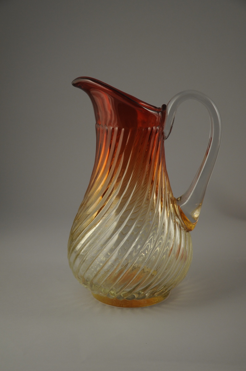 BACCARAT. NÉCESSAIRE DE TOILETTE en cristal rouge et blanc, à décor de godron torse comprenant :