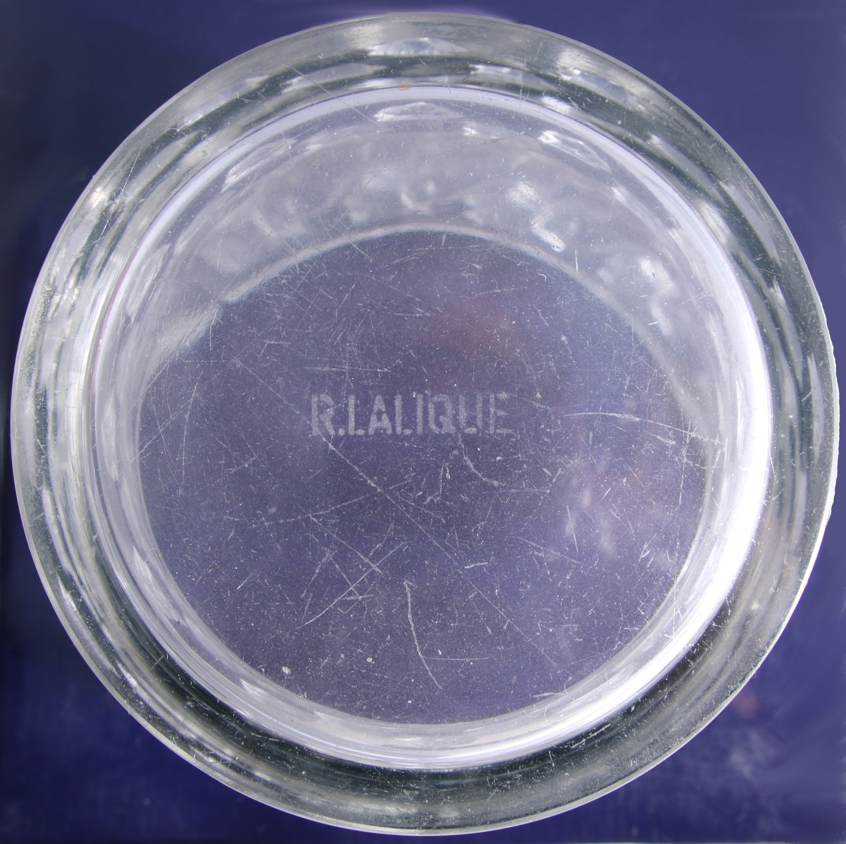 LALIQUE. LAVE-RAISINS "Jurançon". Verre pressé et moulé, signé " R.Lalique".