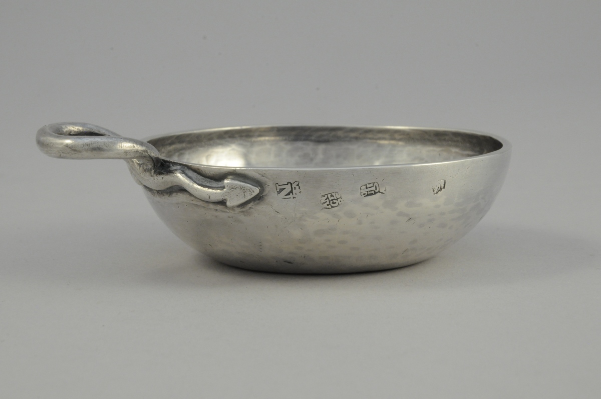 ANGERS. TASTEVIN en argent martelé. Anse serpentiforme.