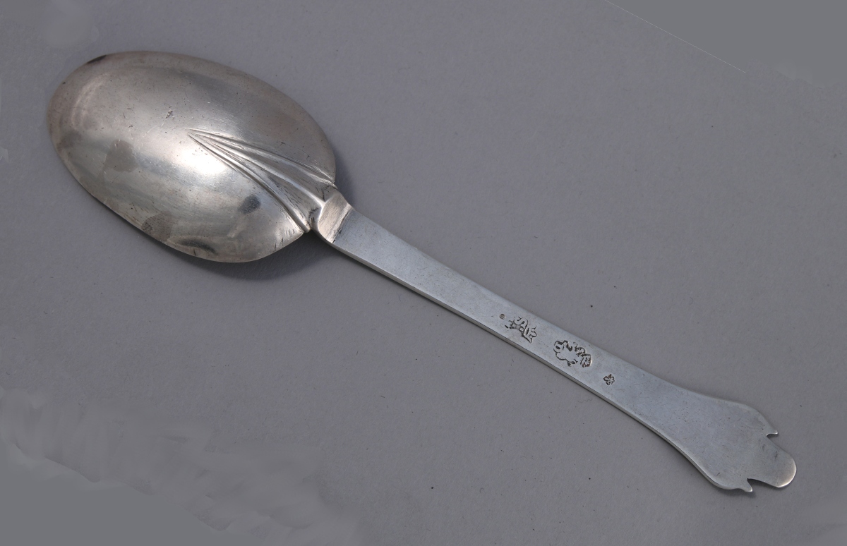 LYON. CUILLÈRE à queue de rat en argent, spatule trilobée.