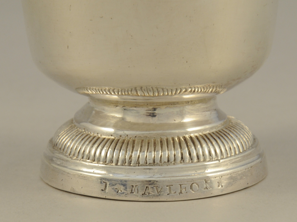 ORLÉANS. TIMBALE dite TULIPE en argent uni reposant sur un piédouche orné d'une frise de godrons. Le col souligné de filets. Le piédouche marqué "J * MAVLEON *".