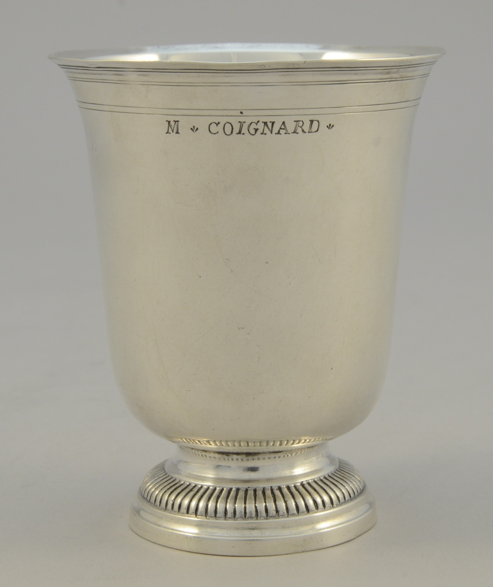 PARIS. TIMBALE dite TULIPE en argent uni reposant sur un piédouche orné d'une frise de godrons. Le col souligné de filets. Marquée "M . COIGNARD .".