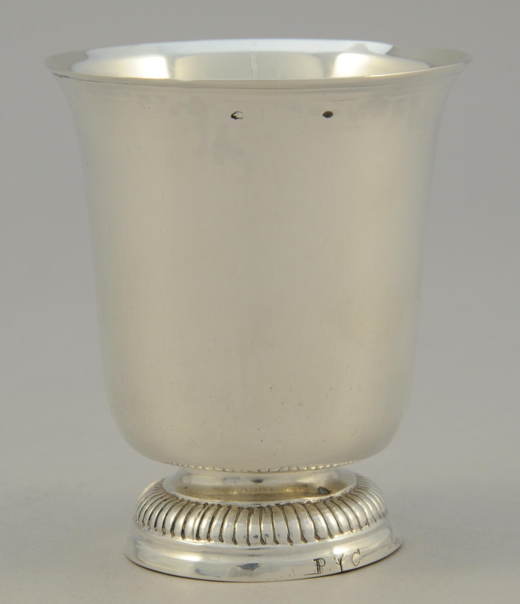 PARIS. TIMBALE dite TULIPE en argent uni reposant sur un piédouche orné d'une frise de godrons. Le col souligné de filets. Le pied monogrammé "P C".