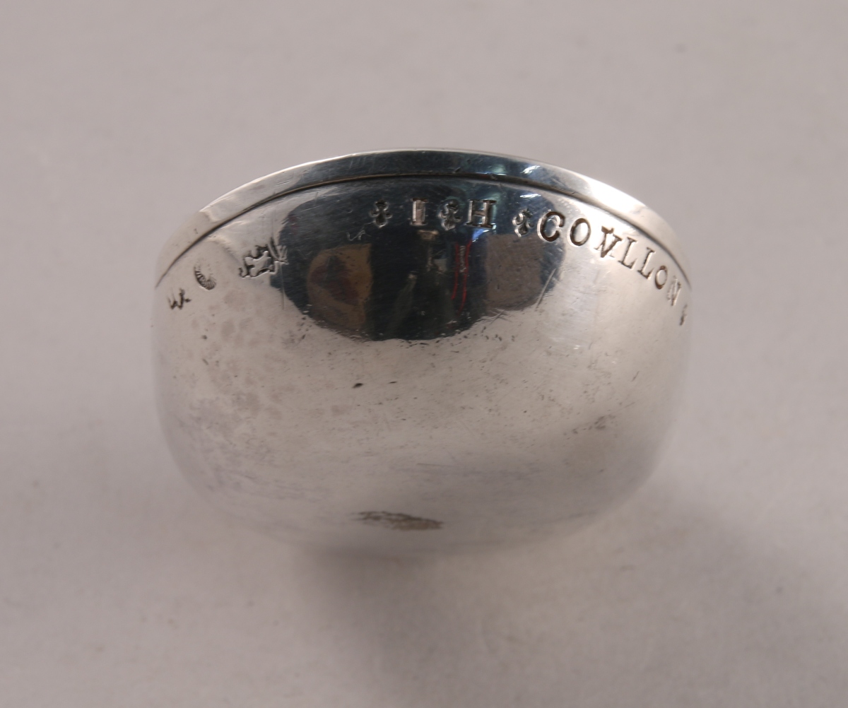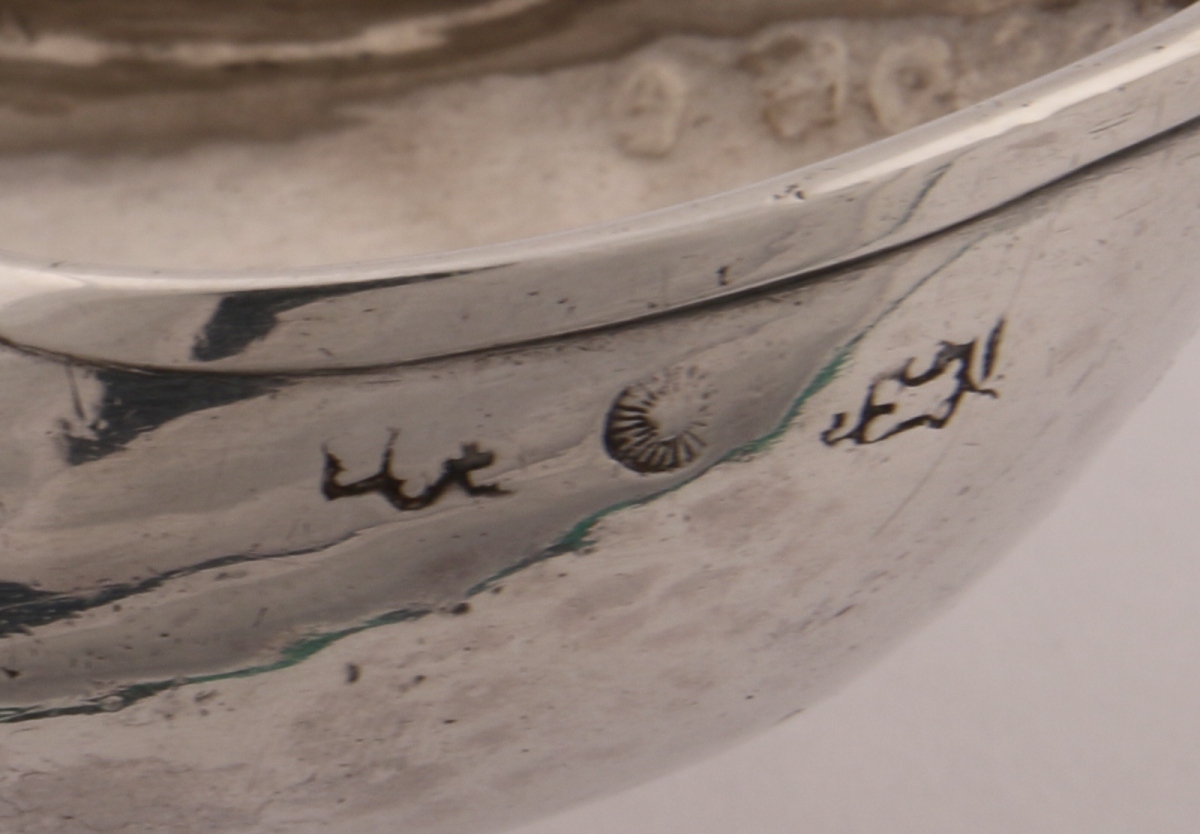 Cette tasse est l'oeuvre d'un Maître-orfèvre tourangeau utilisant une tour couronnée comme différent. Son poinçon comporte vraisemblablement trois lettres, celle en dessous semblant être un F.