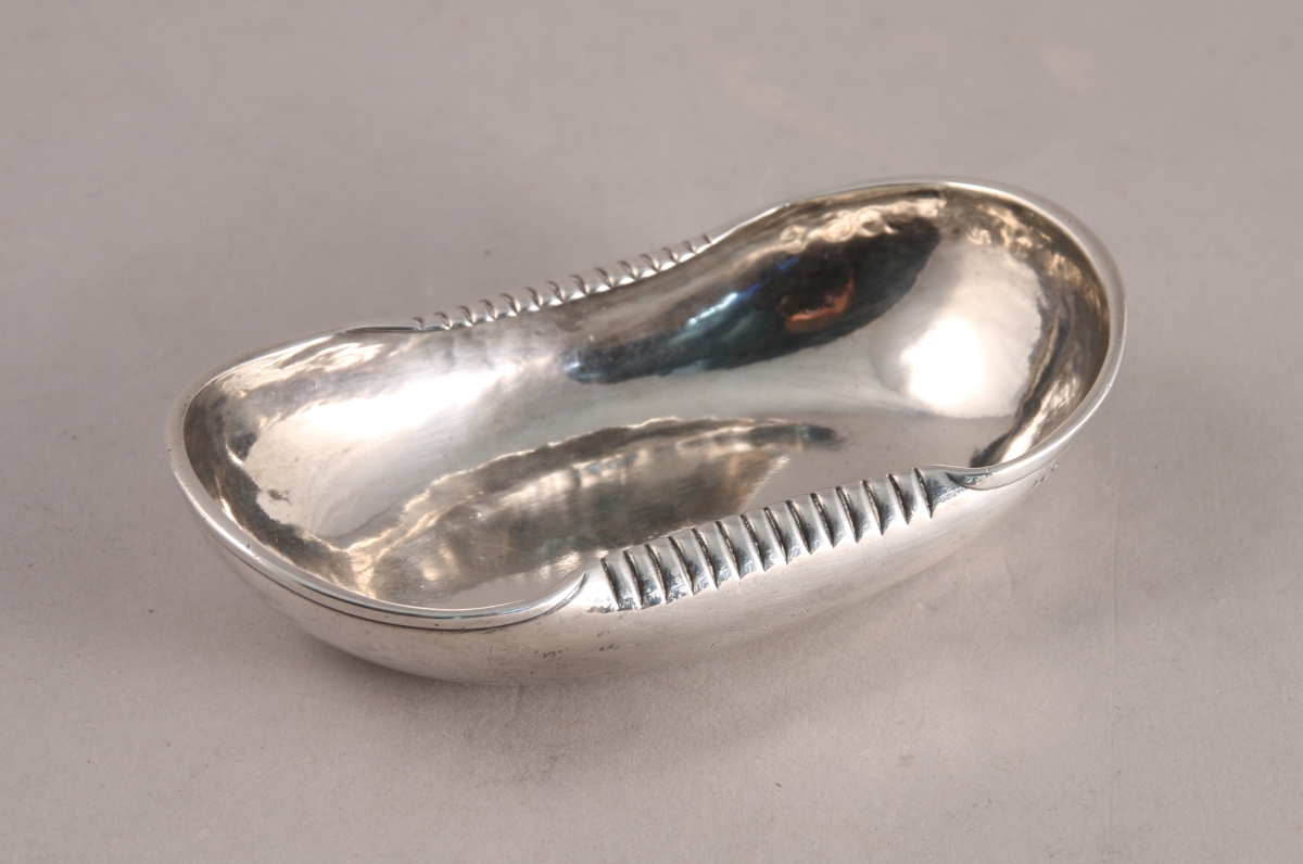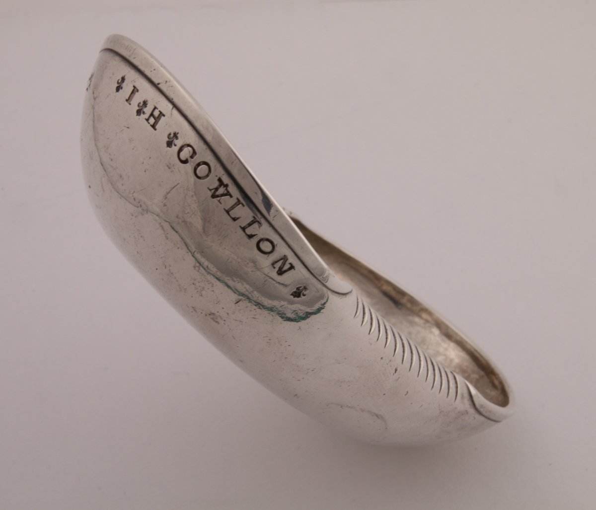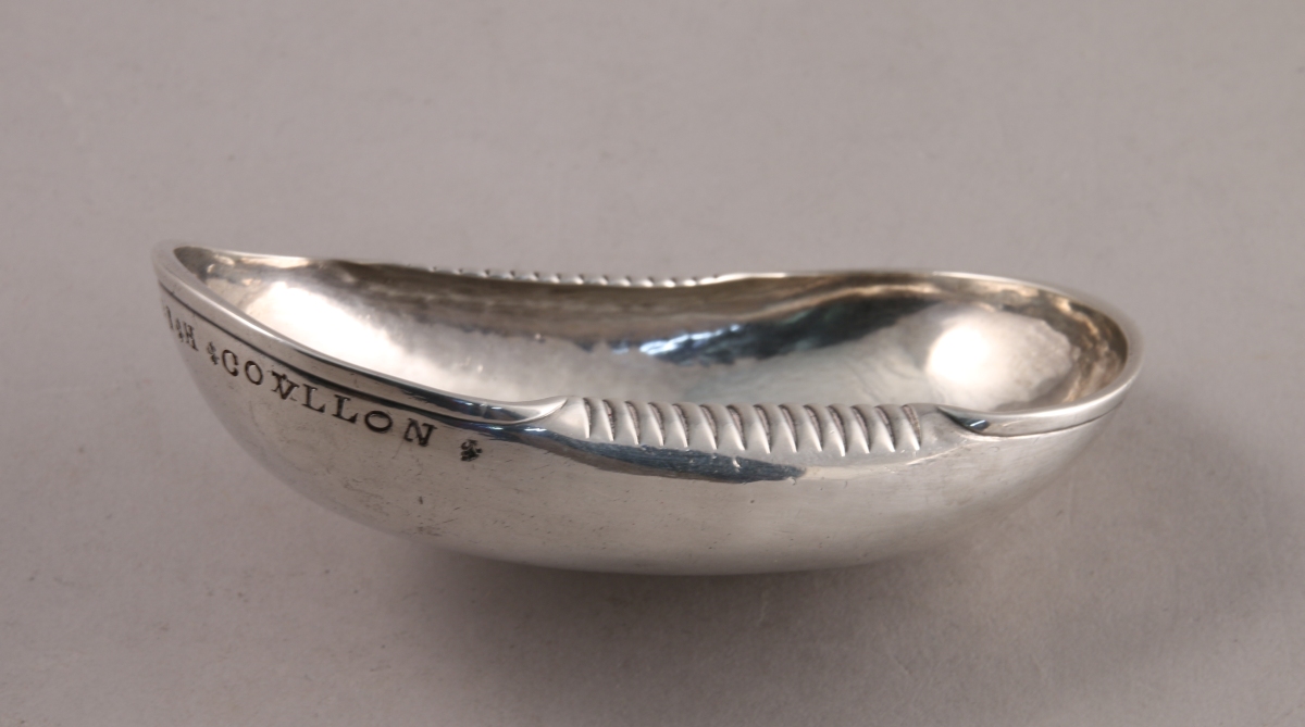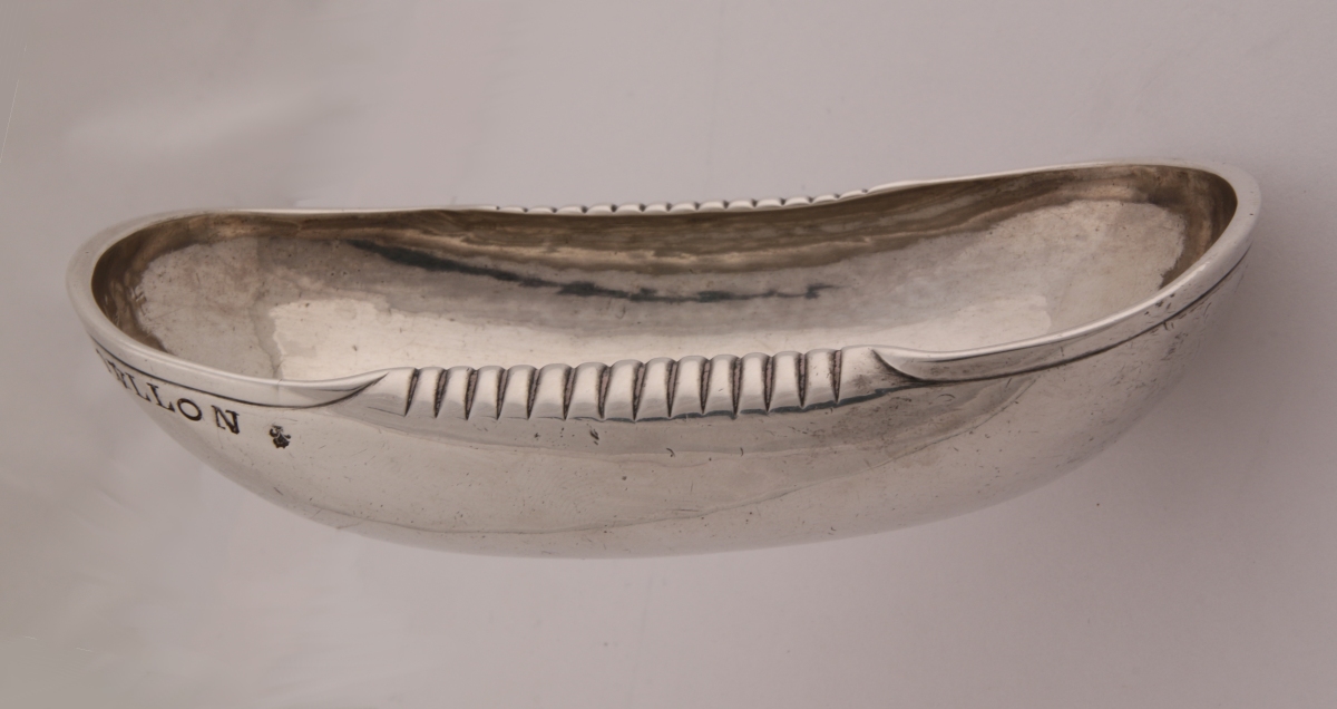 TOURS. TASSE DE CHASSE de forme ovale en argent uni. La partie centrale du rebord à rabats ornés de godrons. Les extrémités soulignées d'un filet.
