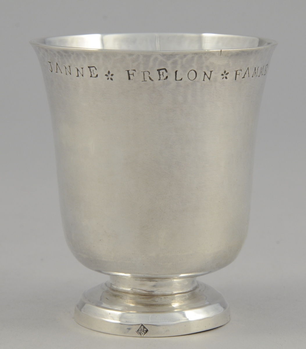 TOURS. TIMBALE dite TULIPE en argent uni reposant sur un piédouche. Le col martelé marqué "JANNE * FRELON * FAMME * DE * F * BOISAU *".