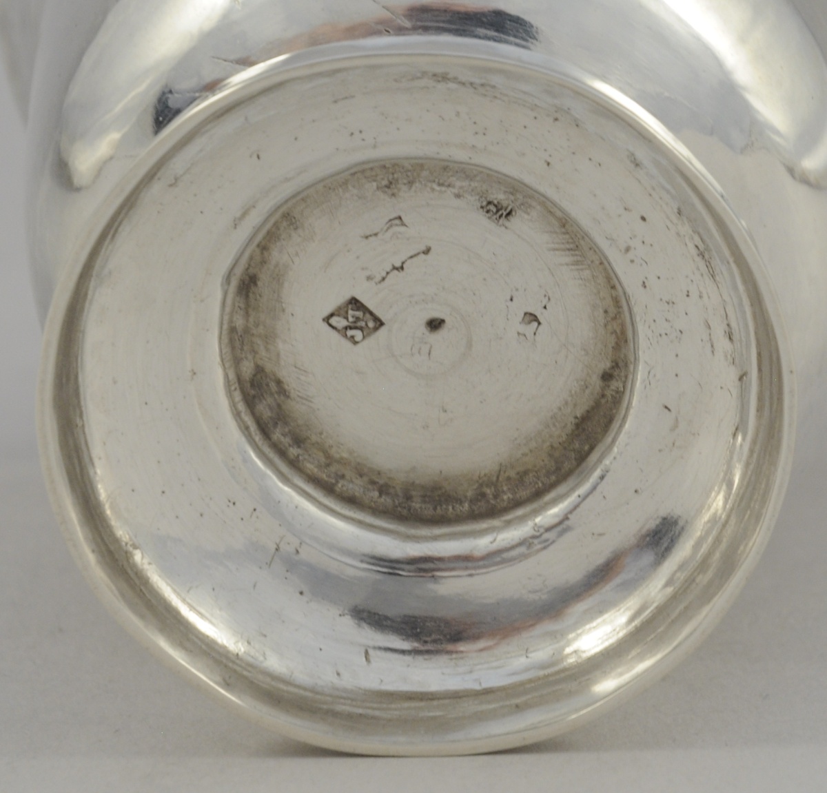Maître-Orfèvre : poinçon en majeure partie illisible, peut-être Étienne-Nicolas Ducoudre, reçu Maître en 1778. Porte également un poinçon d'orfèvre du XIXe.