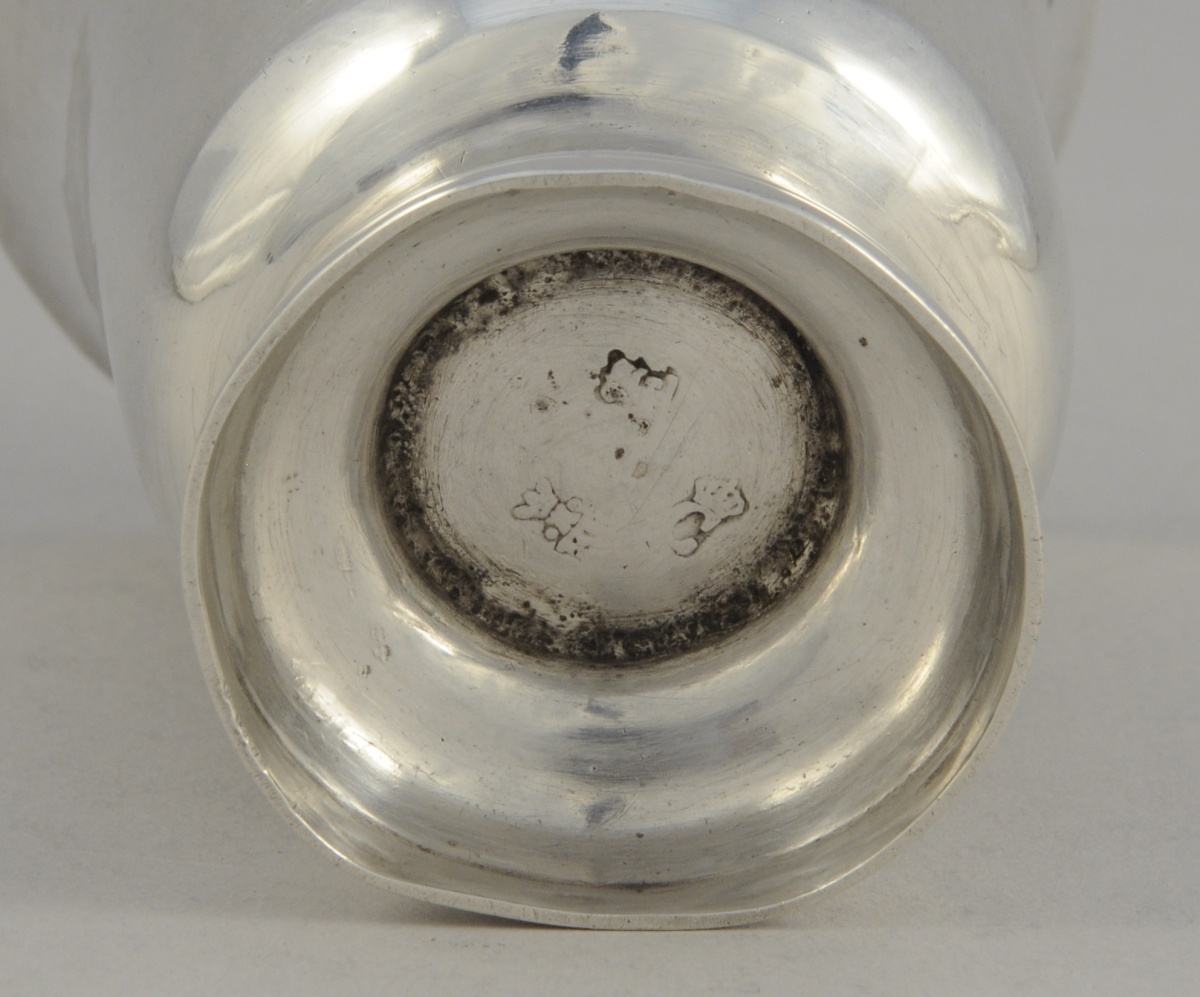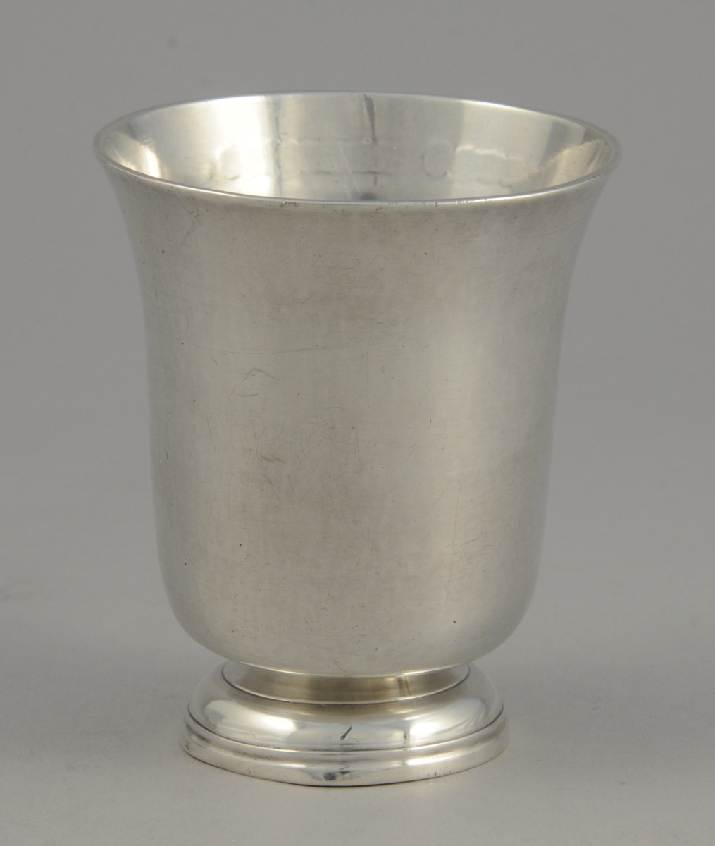 TOURS. TIMBALE dite TULIPE en argent uni reposant sur un piédouche. Marquée sous le col "M HUBERT". Un ancien patronyme masqué par une frise de fleurettes.