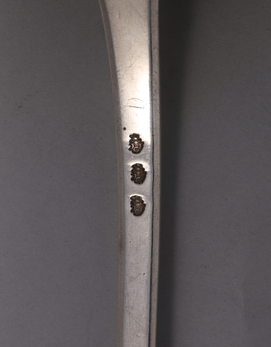 Porte trois poinçons d'un Maître-orfèvre abonné : J, J, G, probablement J.J. Garsuault, actif à Niort.