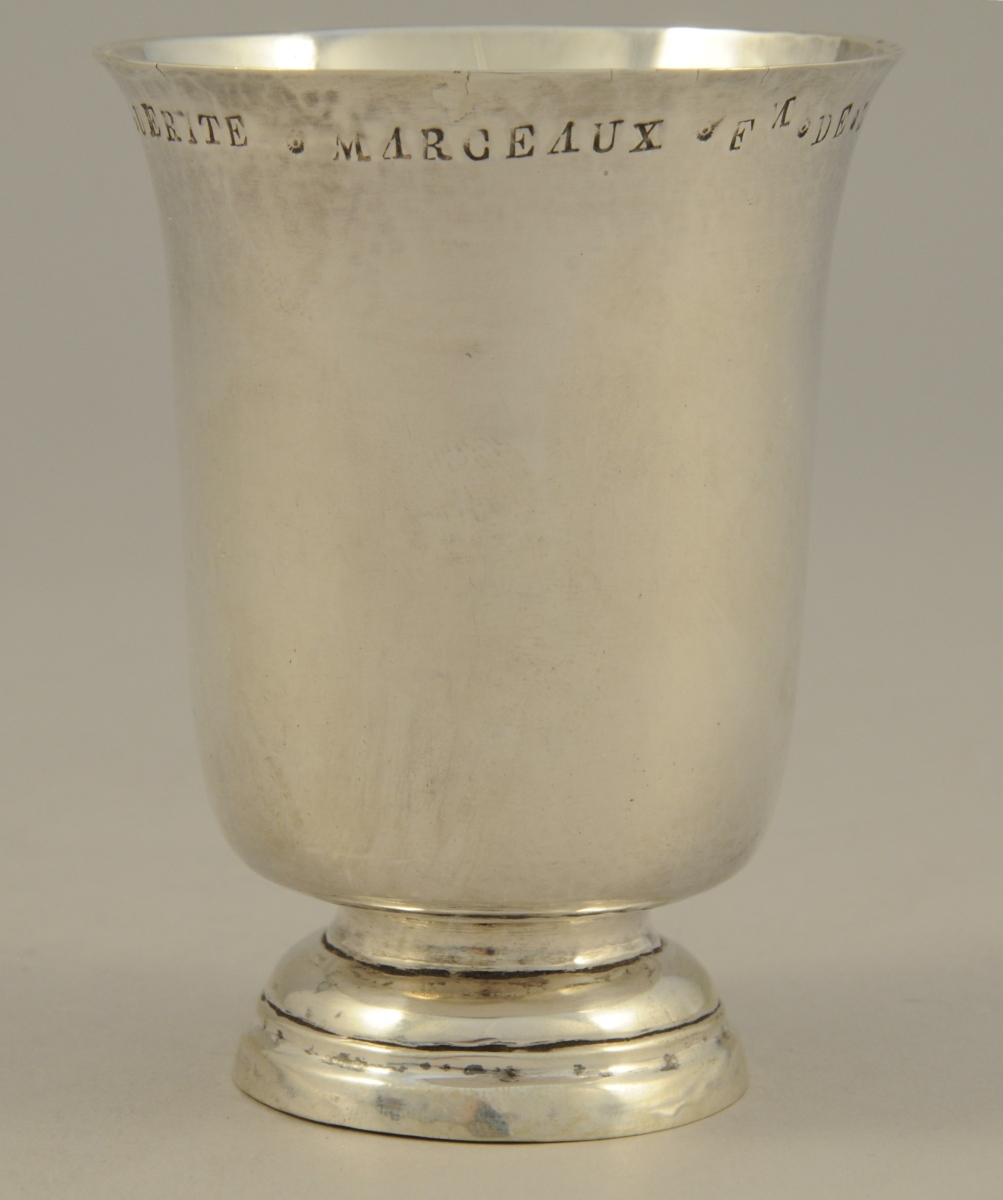 TIMBALE dite TULIPE en argent uni reposant sur un piédouche. Marquée "MARGUERITE . MARCEAUX . FM . DE . L . FOURNIER".