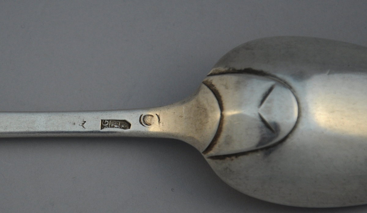 - CUILLÈRE, modèle uniplat. La spatule gravée d'armes d'alliance posant sur deux ancres dans des guirlandes feuillagées. Poinçons aux Fermiers Généraux. XVIIIème. Poids : 70 g.
