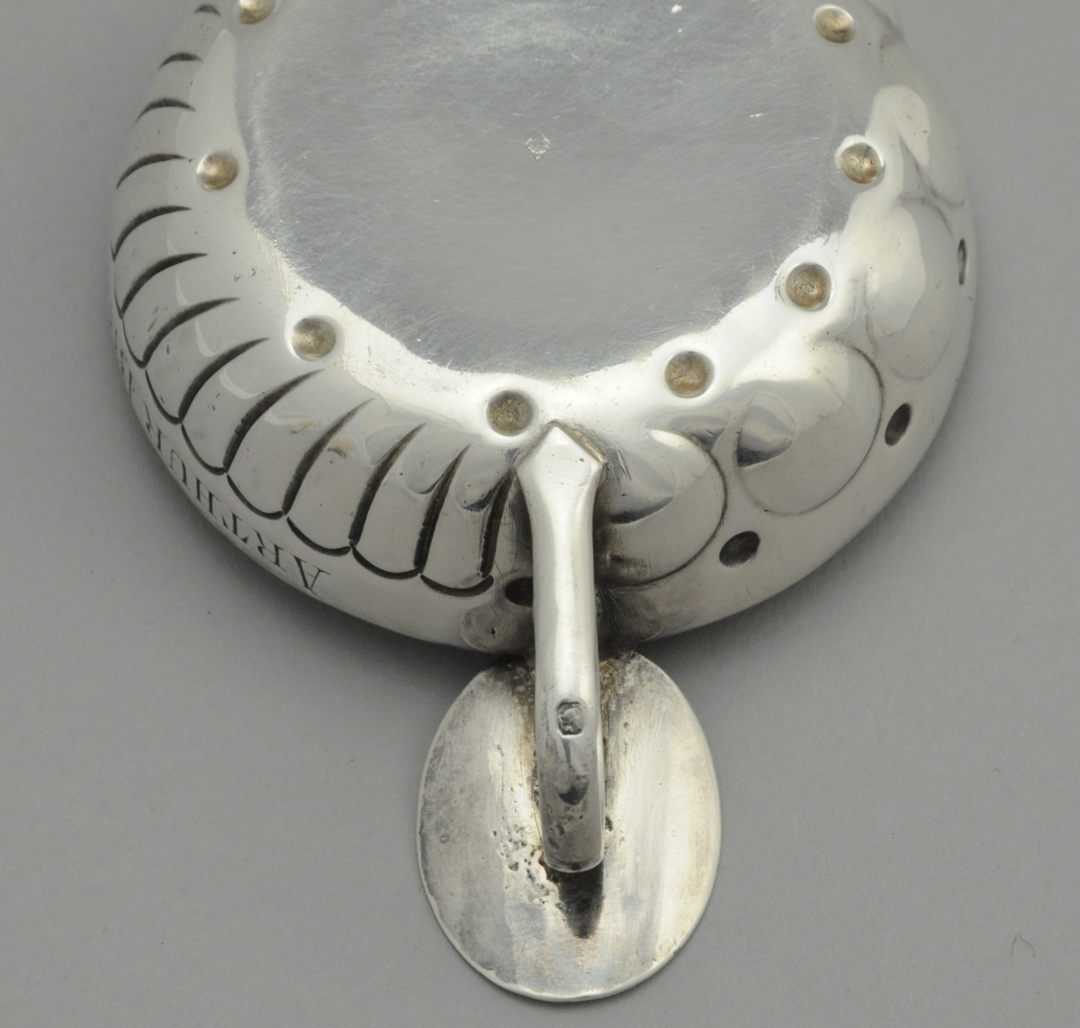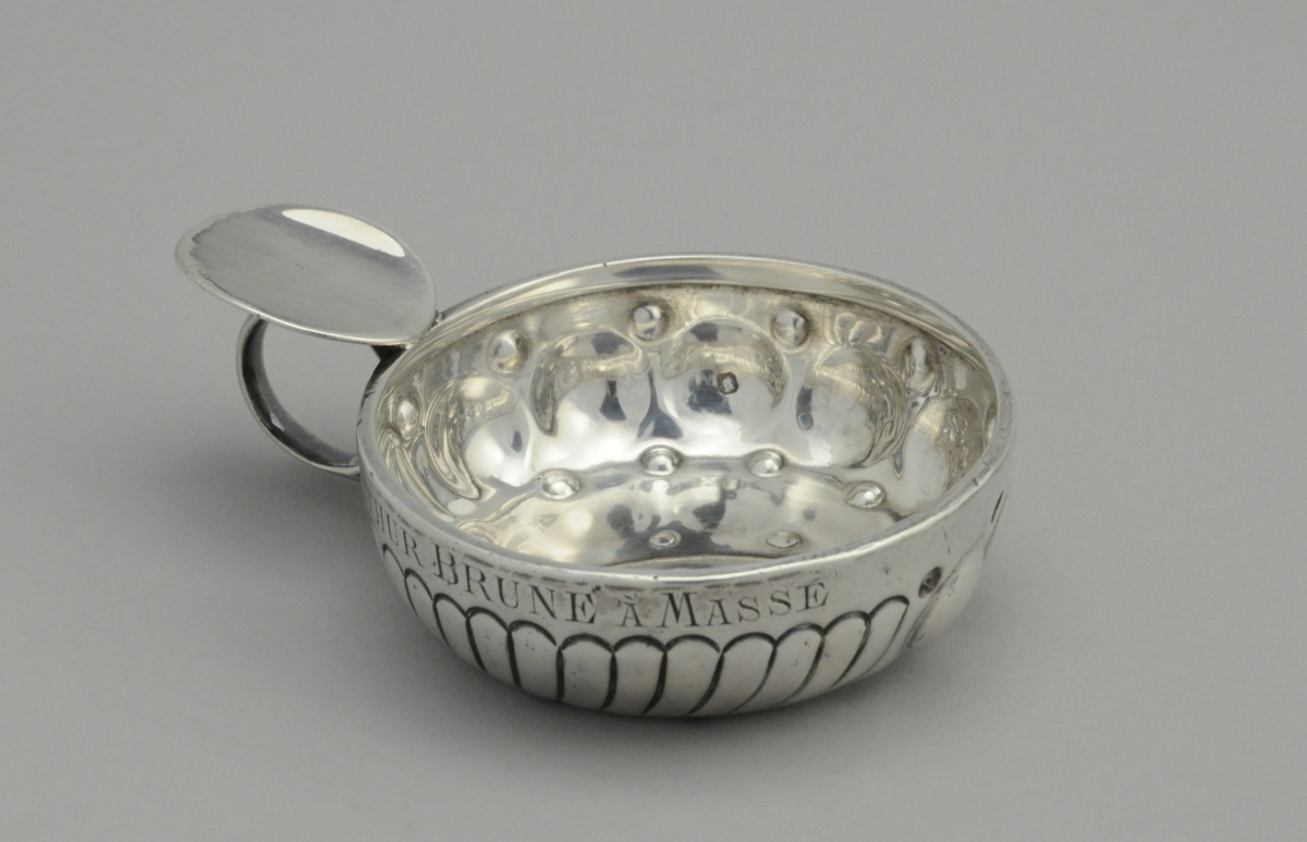 TASTEVIN en argent à décor de godrons, perles et cupules marqué "ARTHUR BRUNE À MASSÉ". Appui-pouce de forme ovale agrémenté d'une prise en anneau.