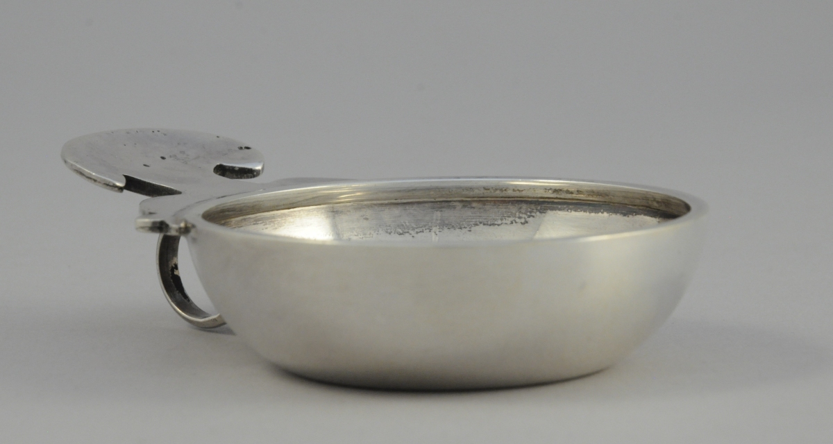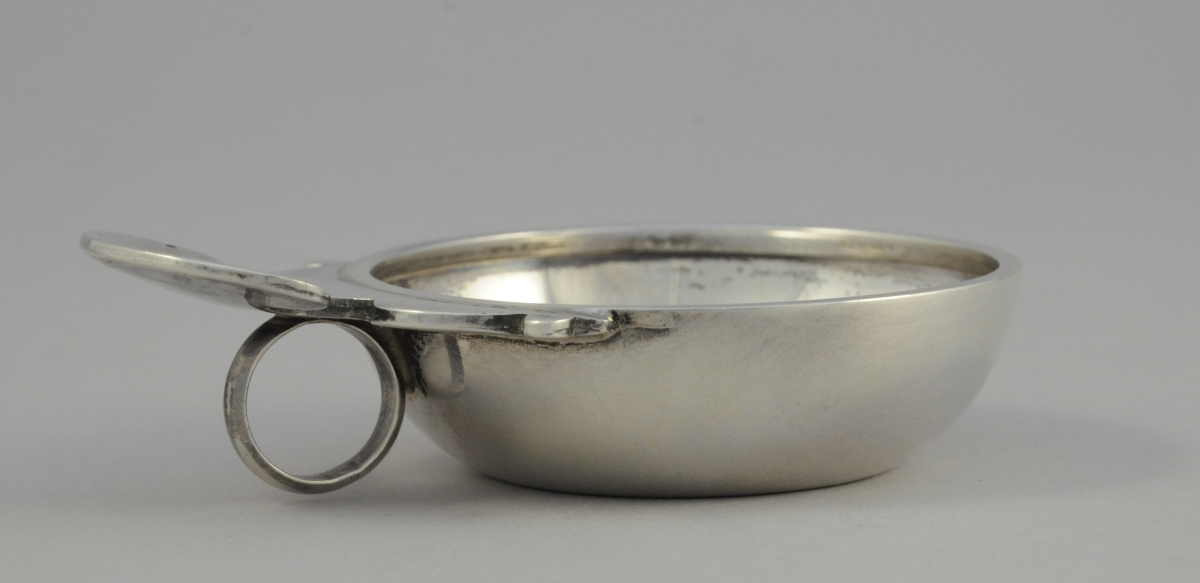 TASTEVIN en argent uni. Appui-pouce découpé agrémenté d'une prise en anneau. Fond bombé.
