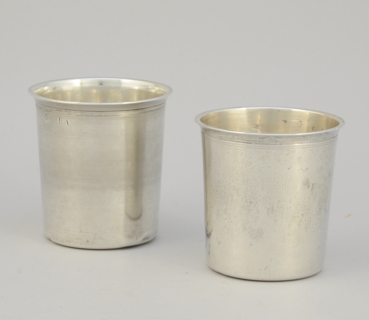 DEUX TIMBALES argent, dites de collégien, modèle droit.
