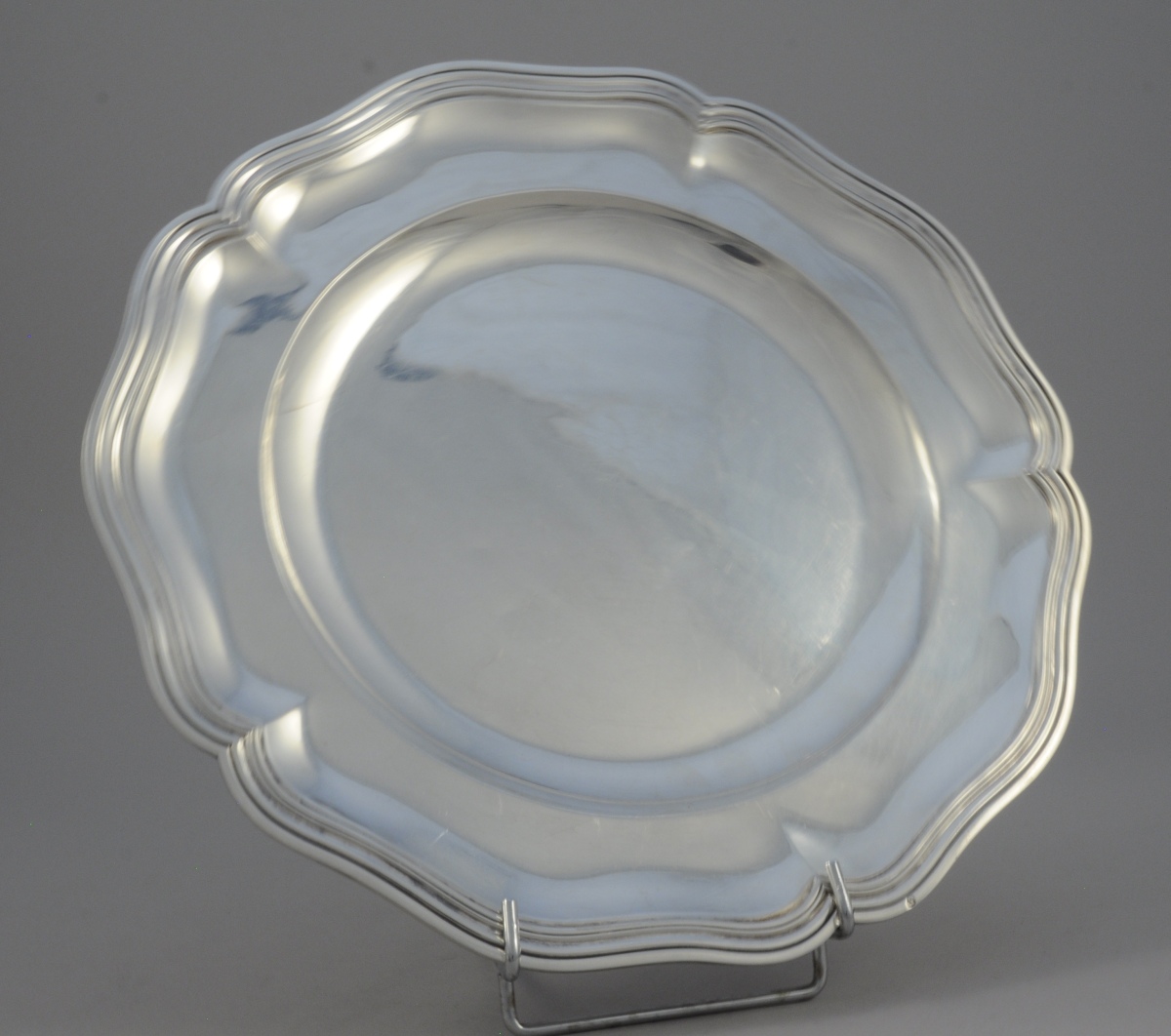 - PLAT de forme ronde à bordure chantournée à batte contour de style Louis XV.