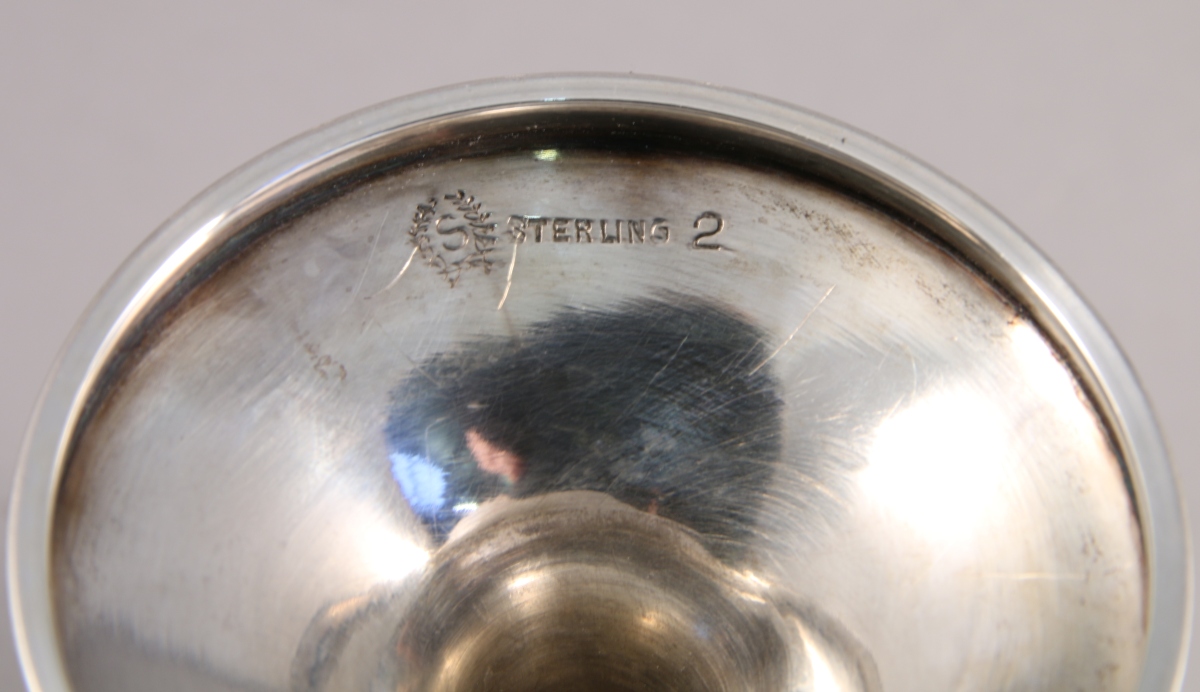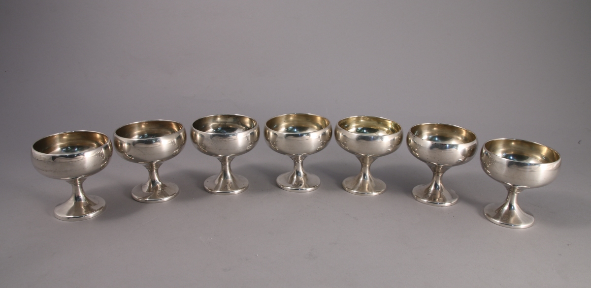 Suite de 17 COUPES À GLACE évasées en argent uni sur piédouche. Réceptacle anciennement vermeillé. L'une gravée : "R-H-A- of N-J- / Donated by / H-Stacy Smith".