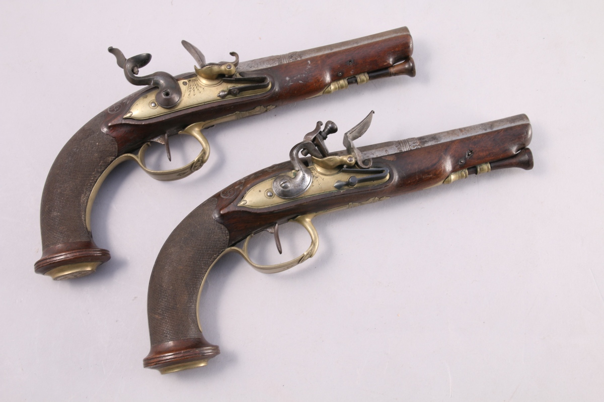 PAIRE DE PISTOLETS À SILEX D'OFFICIER.