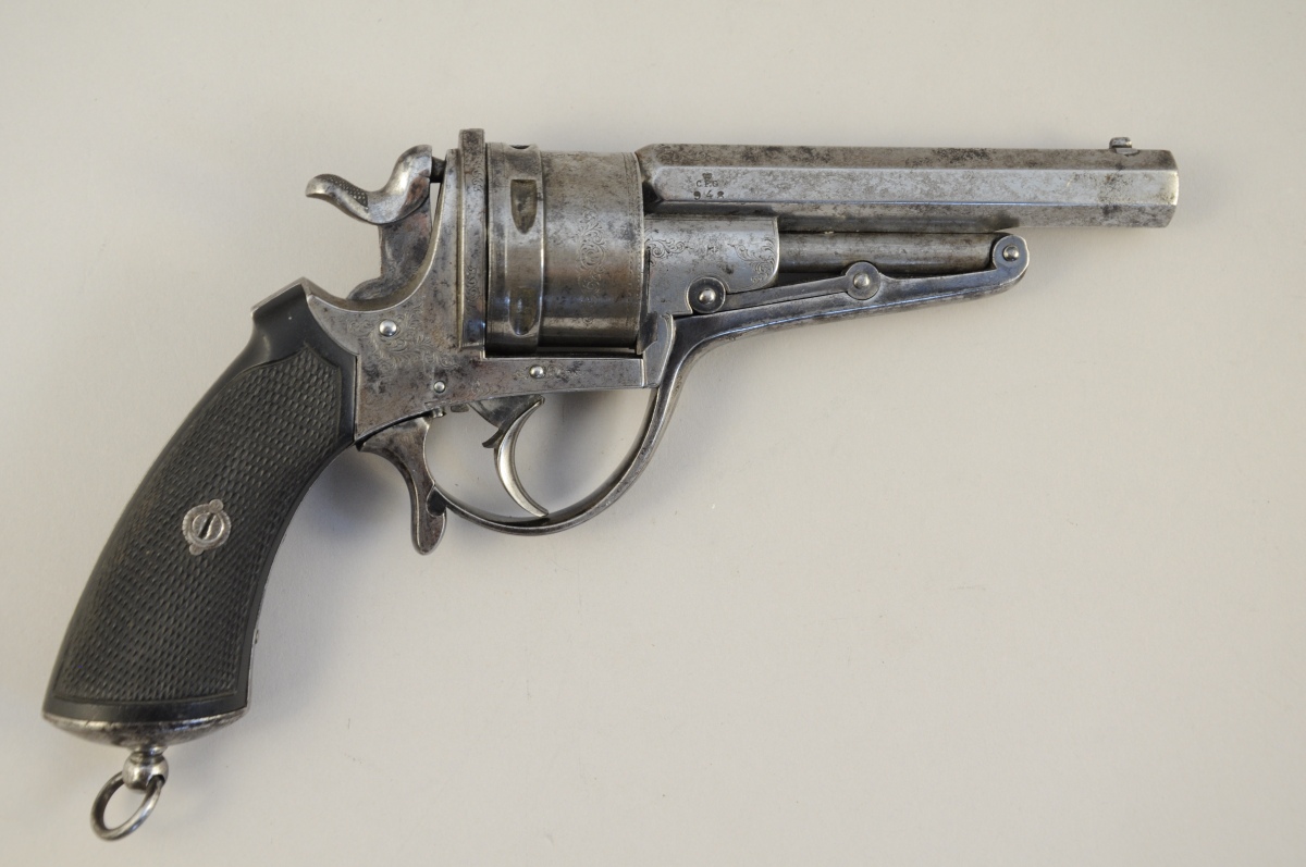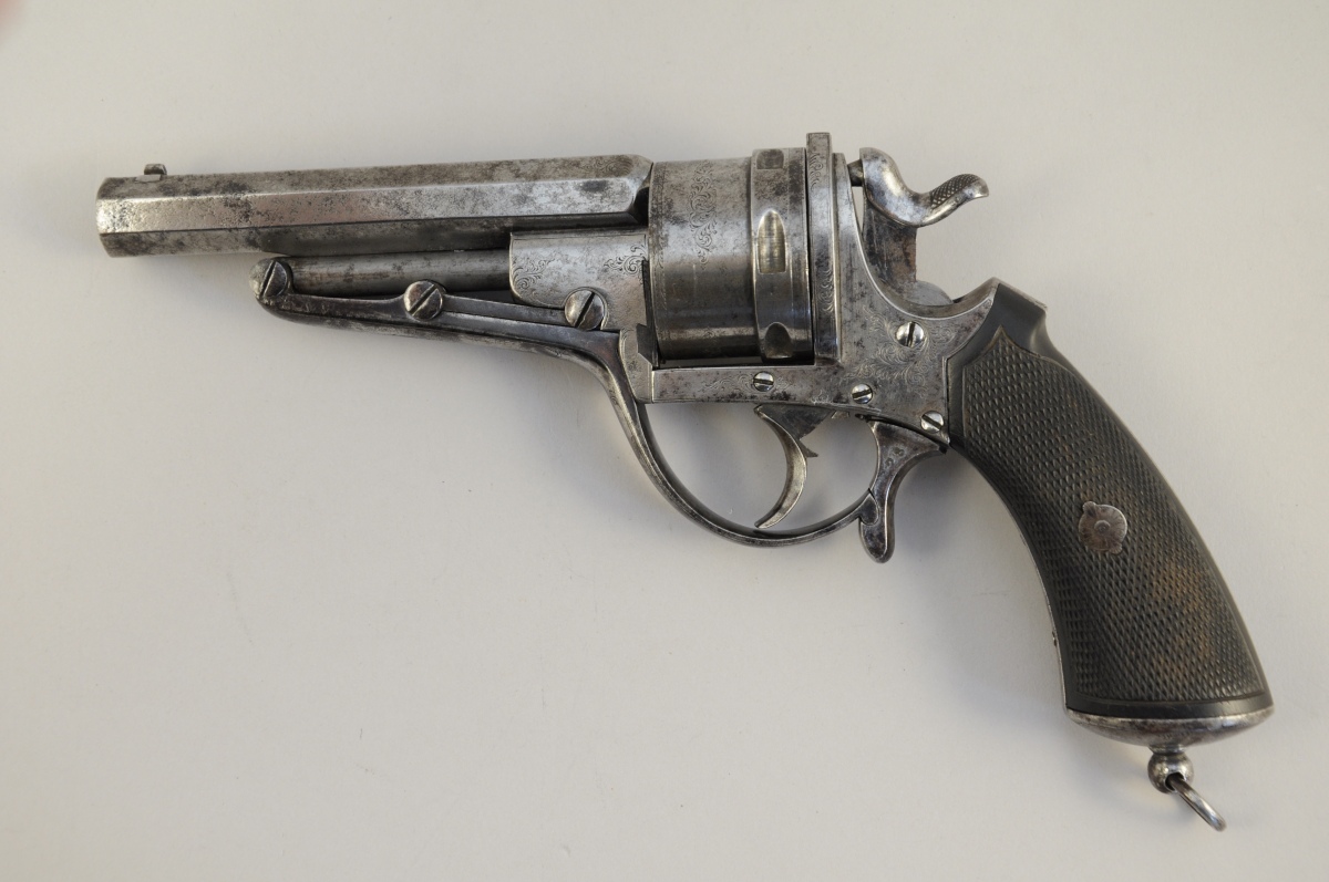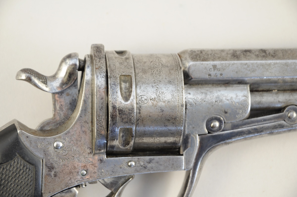 REVOLVER à système GALAND, 6 coups. Canon à pans. Finition gravée.