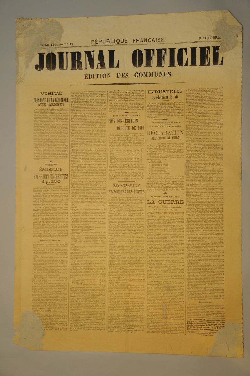 - Journal officiel, n°40 du 6 octobre 1918.