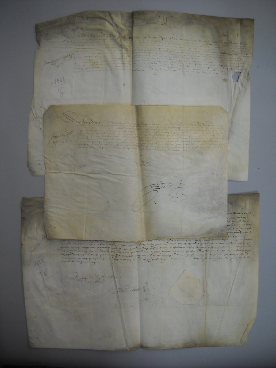 [Charles IX - Gentilhomme de la chambre du roi]. 3 pièces, 1562-1563.