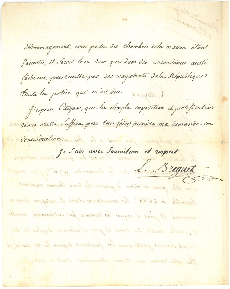 L.S. aux autorités parisiennes, sans date,... [Révolution] Abraham-Louis BREGUET (1747-1823), horloger