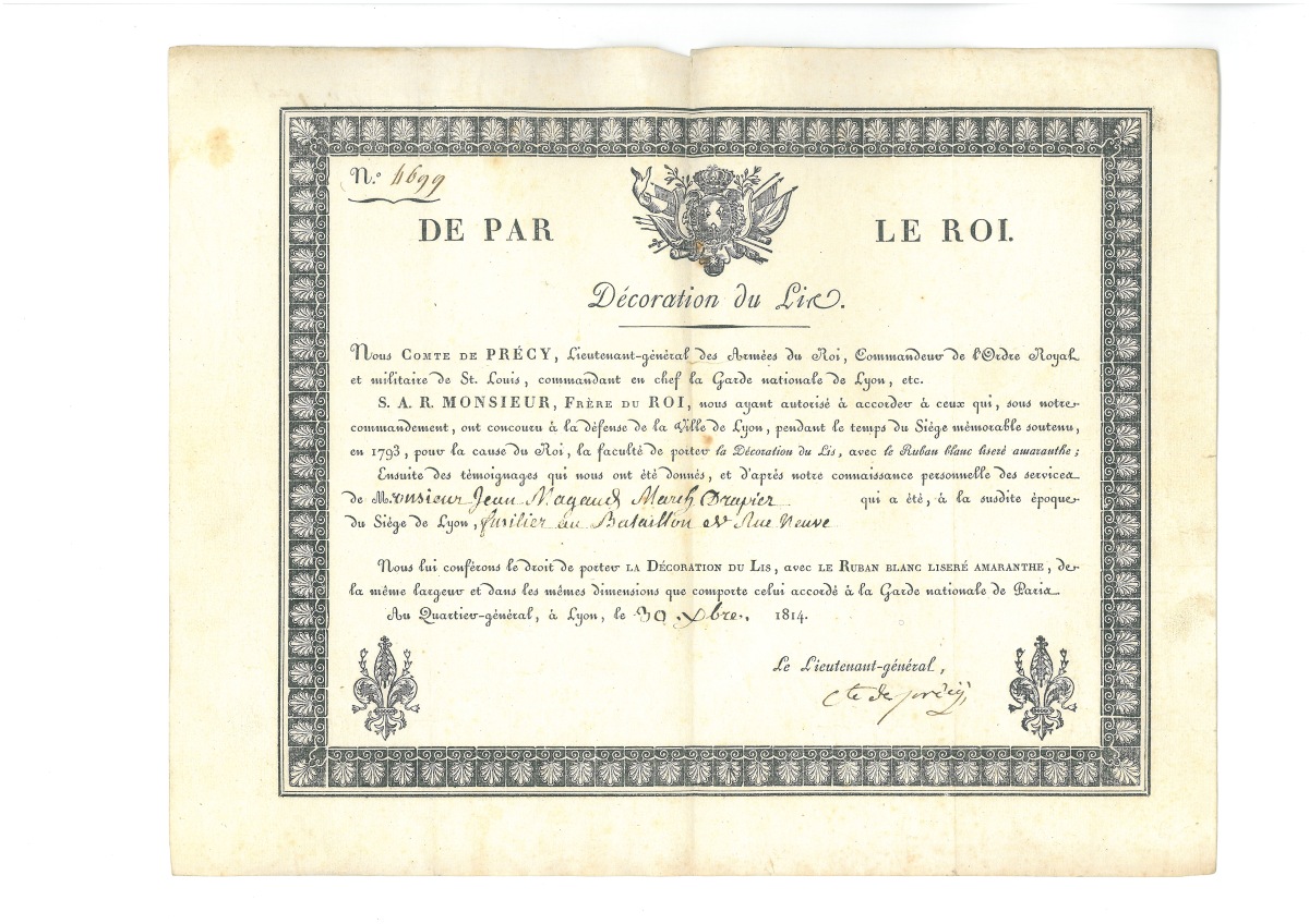 " - " Avis du général Mouton-Duvernet aux habitants de la Drôme ", 7 mars 1815, imprimé par F. Brebion à Valence, 4 pages in-12, appel du gouverneur militaire de Valence à empêcher le retour de Napoléon Ier - Tract propagandiste " Nous Marie-Thérèse de France fille de France, duchesse d'Angoulême, aux Bordelais, aux habitants de la Gironde
